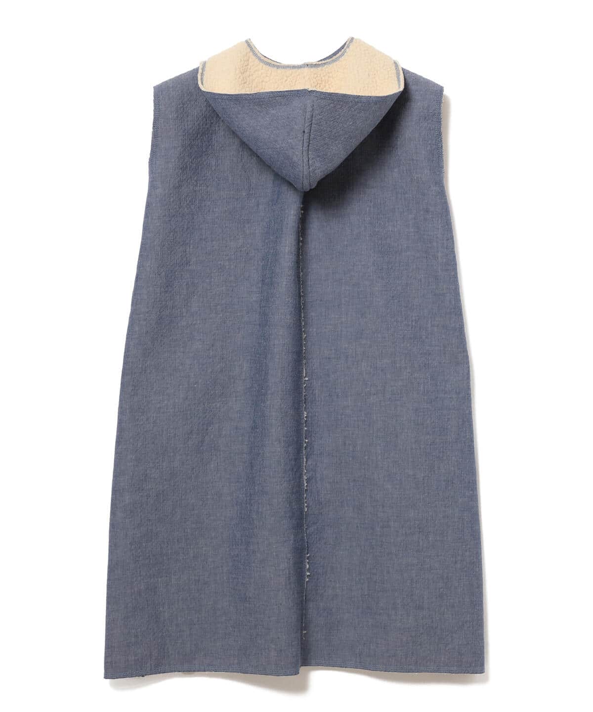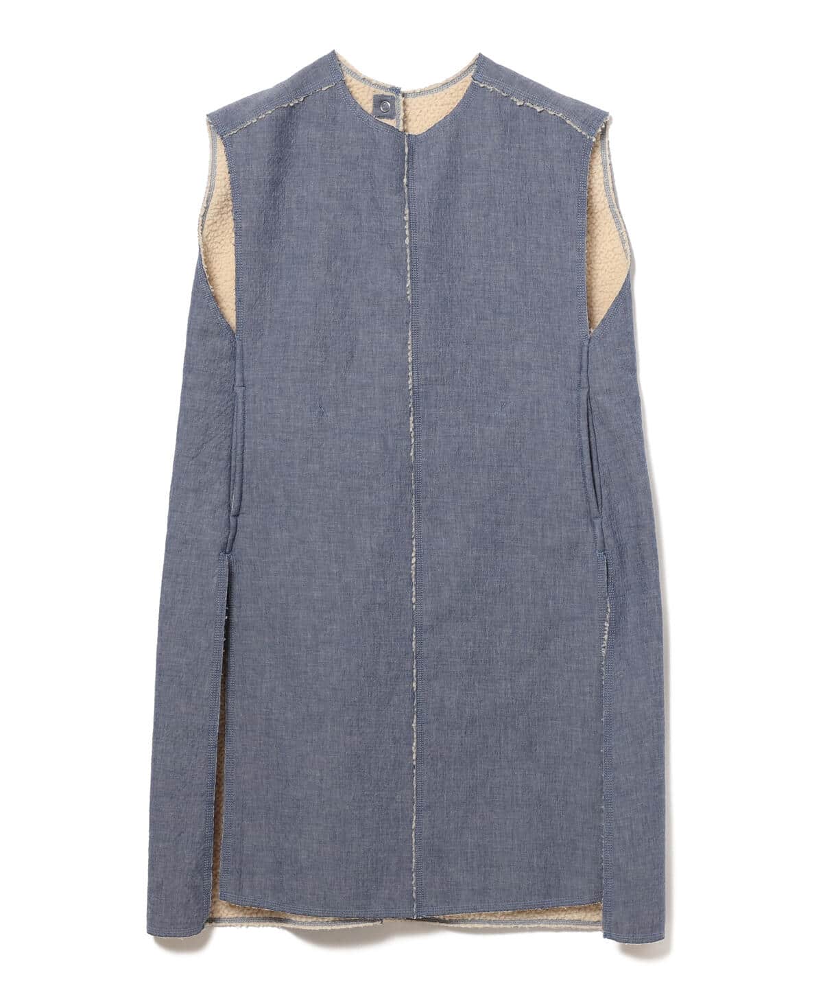 ボアシャンブレー素材を使用した〈maturely(マチュアリー)〉のワンピースが。表面はコットンシャンブレー、裏面はボア素材を使ったオリジナル生地は、軽さのある仕上がりに。取り外し可能な衿は、着こなしのアクセントとして単体でも活躍するアイテムです。