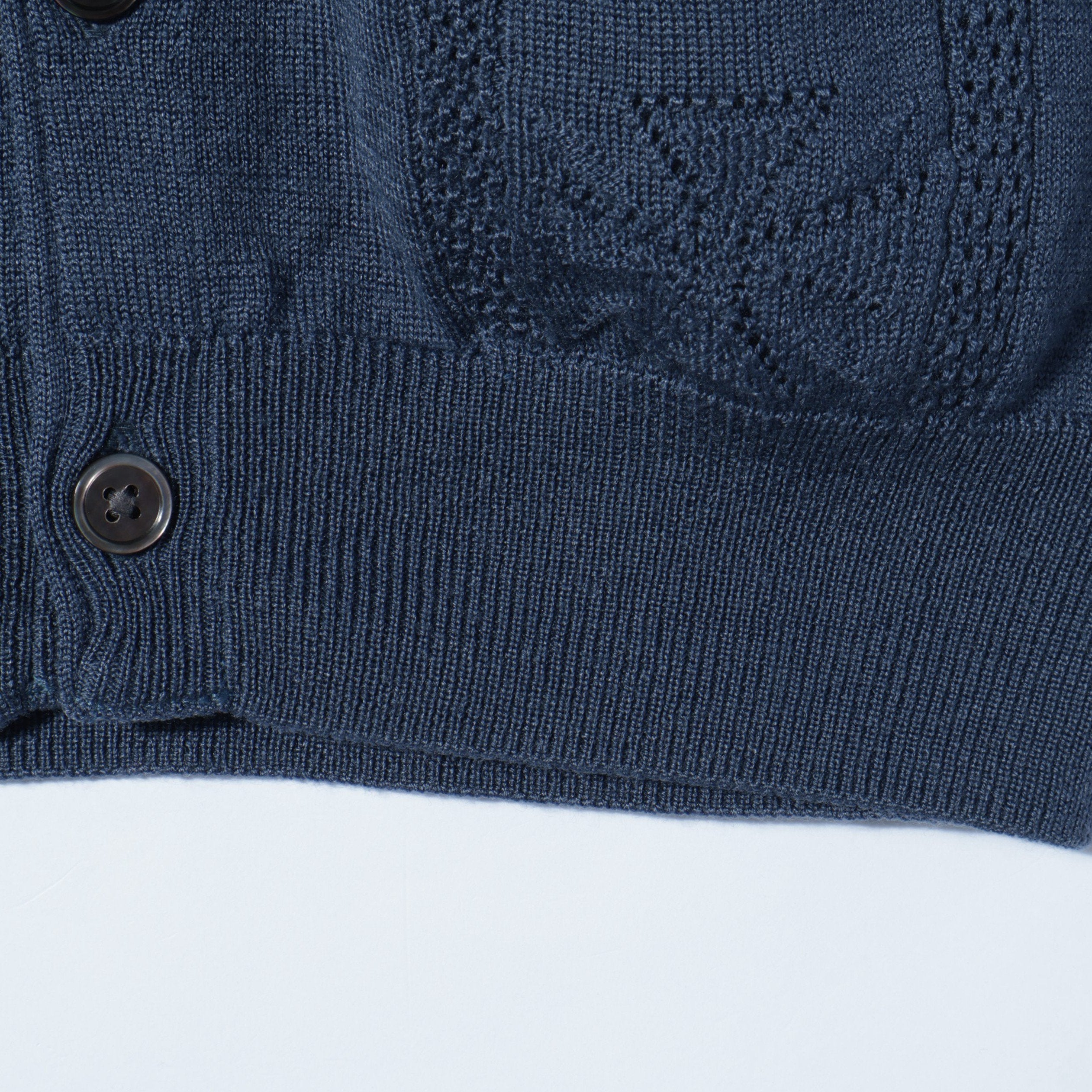フロントにほどこされクロスモチーフが特徴のカーディガン。インナーとしてもおすすめです。