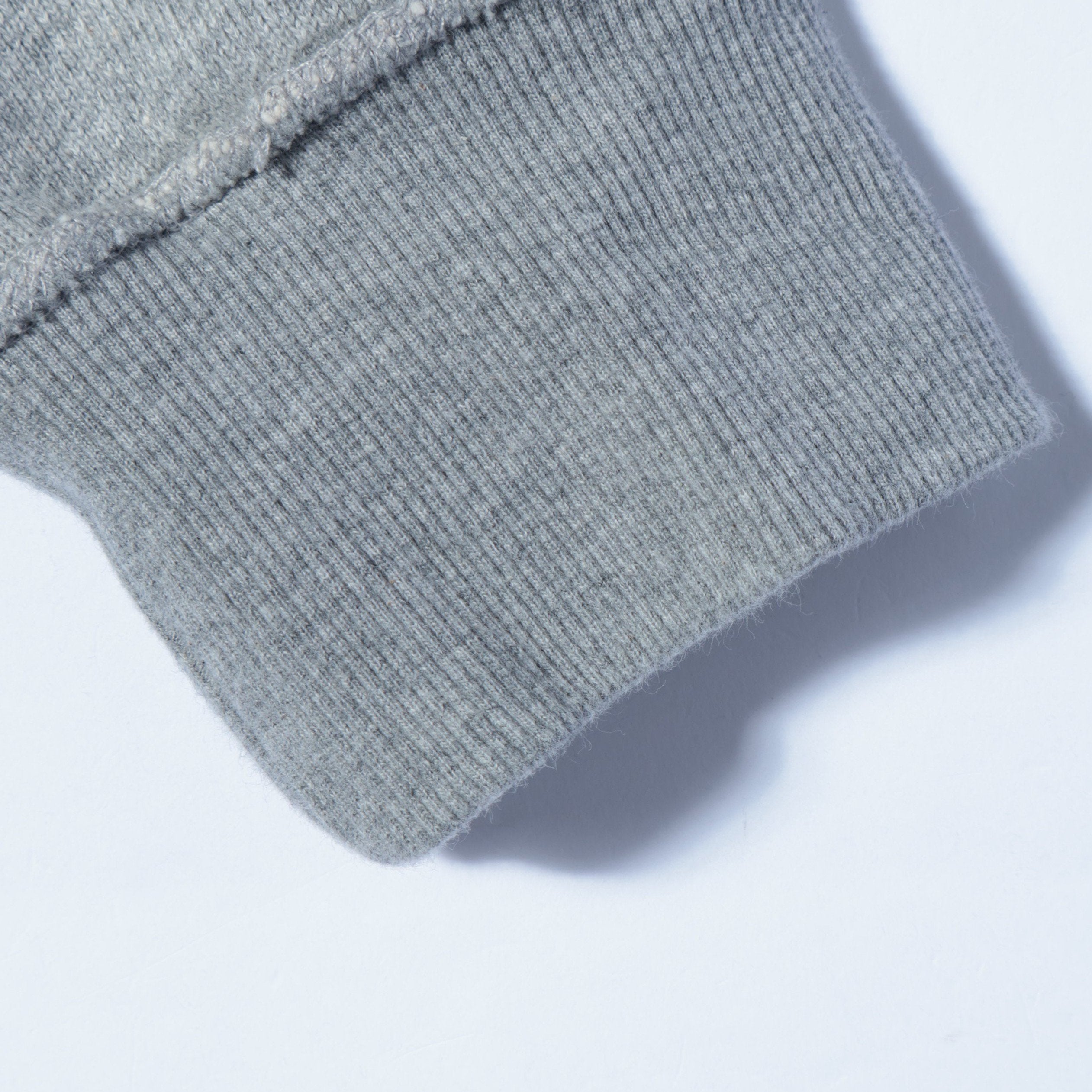 ・トンプキン編み機:1874年に開発された非常に希少な丸編み機。現代の一般的な高速編み機に比べて、編み上げのにかかる時間は通常の10倍。ゆっくりと編むことで空気をため込む隙間が生まれ、優しく柔らかい質感になります。また、糸を下から上へと編み上げることで自重の負荷を受けることなく、柔らかく膨らみのある生地に仕上がります。