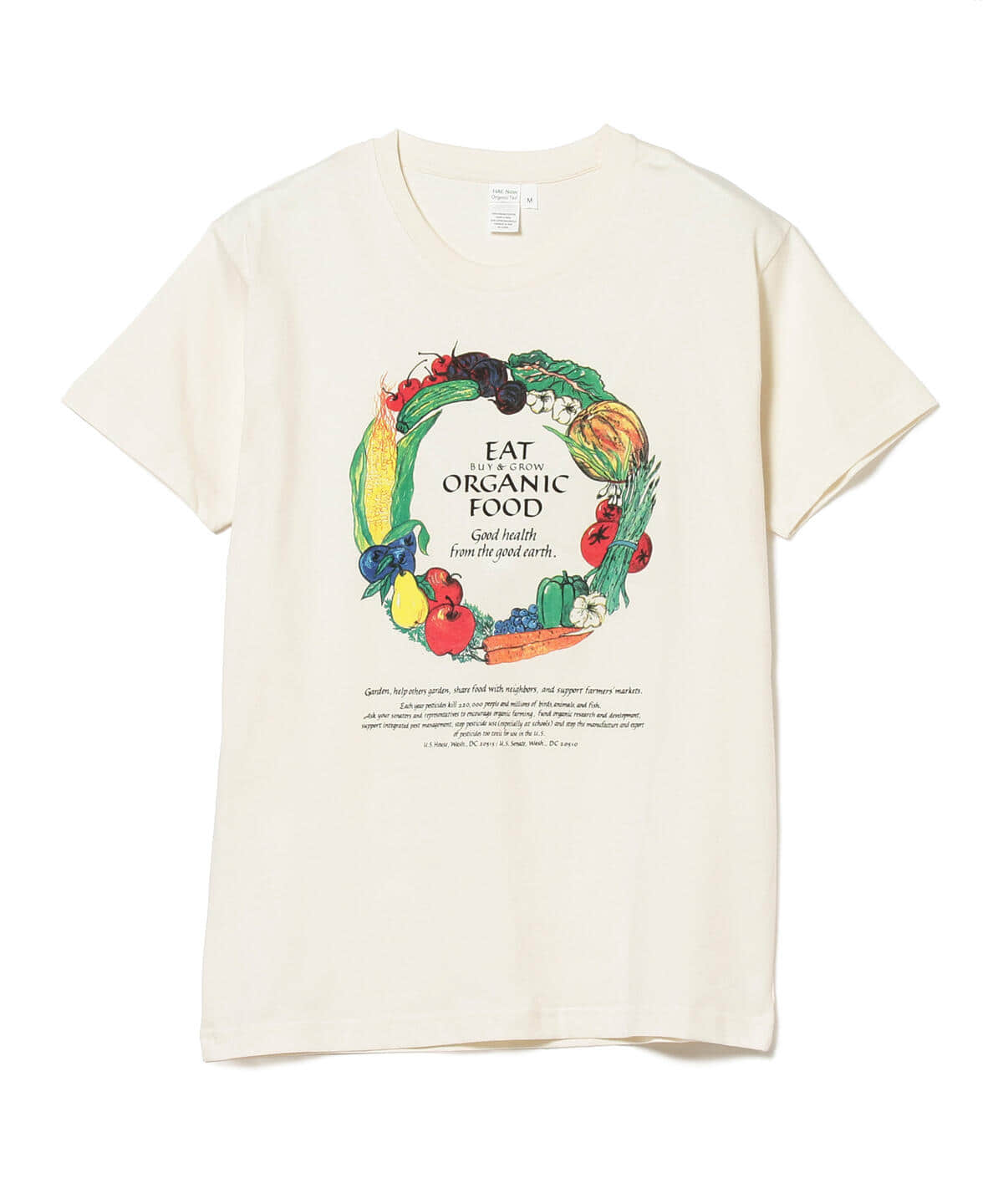 〈JIM MORRIS(ジムモリス)〉は環境保護やエコ活動を広げることをミッションとして活動しているアクティベスト。1976年から自然をテーマにしたTシャツカンパニーをスタート。多くの自然環境保護団体と協力し、40年以上にわたり自然を守るための募金活動やファンドレイジングを積極的に行っており、アーティストによって描かれた動物や自然と、それを表現する魅力的なフレーズが多くのファンを魅了してきました。「ORGANIC FOODTEE」は当時、アウトドアブランドが流行った時に人気だったデザインです。