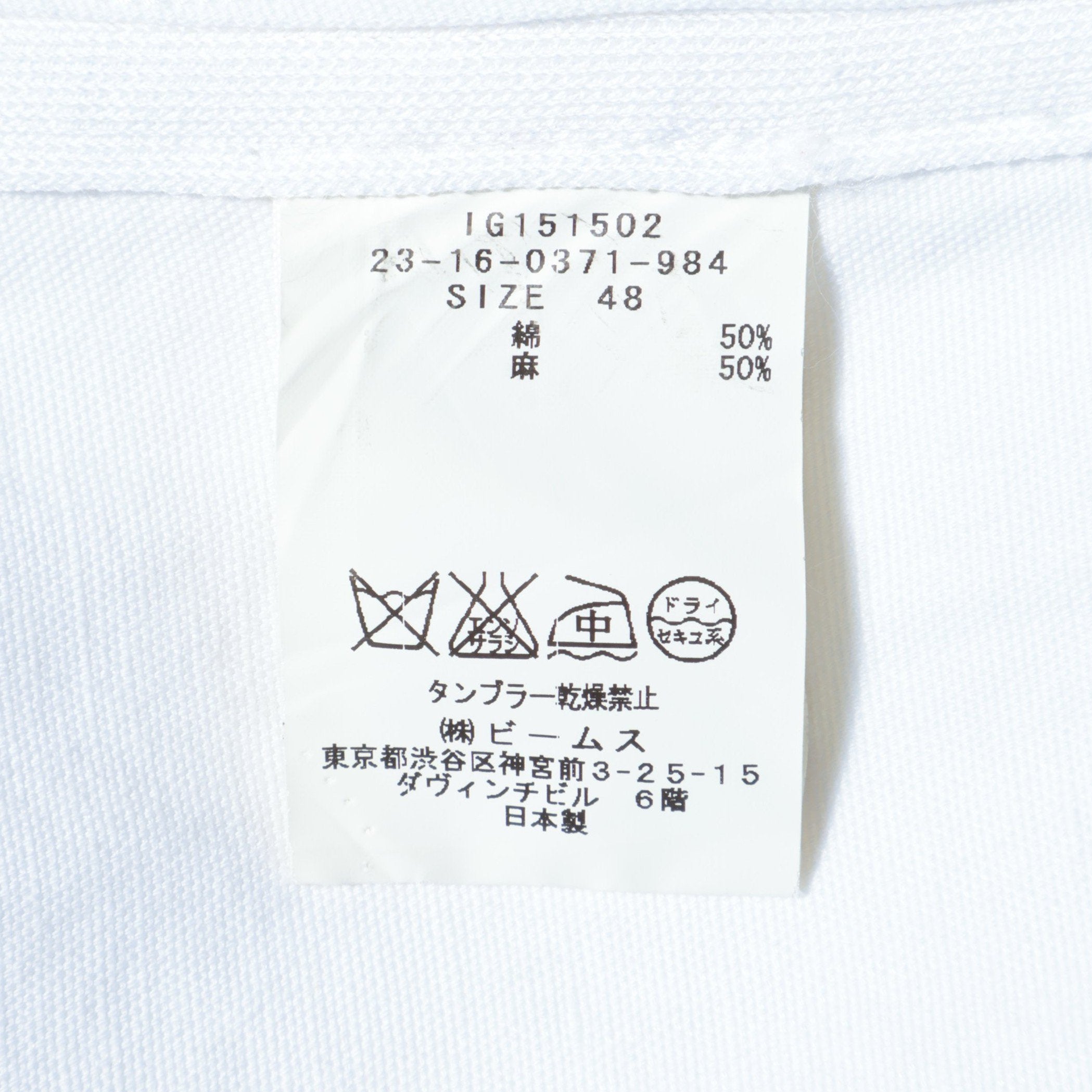 パジャマシャツがアイデアソースとなった一枚仕立てのシャツジャケット。清涼感のあるコットンリネン地はヴィンテージファブリック。マッチングの良いヴィンテージボタンを使用し、部分的に施されたパイピングがアクセント。スタンドカラーシャツとしても使え、軽く羽織れるブルゾンのようにも使える点がポイント。スクエアでコンパクトなシルエットで仕上がっており、ボトムスタイルを選ばない魅力あるアイテムです。