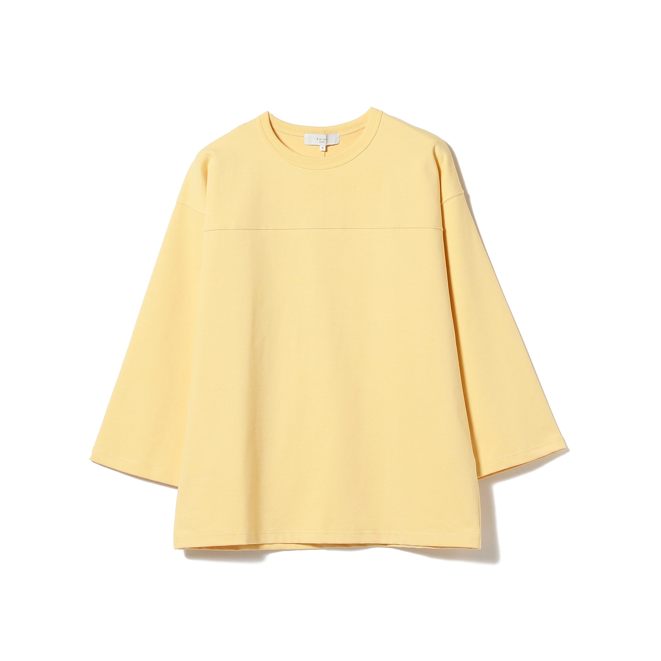 〈B:MING by BEAMS〉では定番のスーパーヘビーウェイト素材を使用したフットボールTシャツです。ボディーの切り替えしはフットボールTシャツならではのディテール。9分袖がシルエット全体の抜け感を引き立てるポイントです。