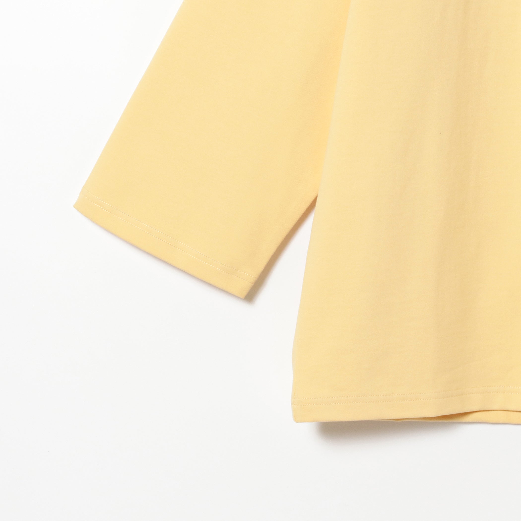 綿98%、ポリウレタン2%の絶妙な混率の度詰め天竺素材です。弾力とさらりとしたタッチが快適な着心地を生み出します。きめ細かい生地はクリーンな印象も引き立てます。