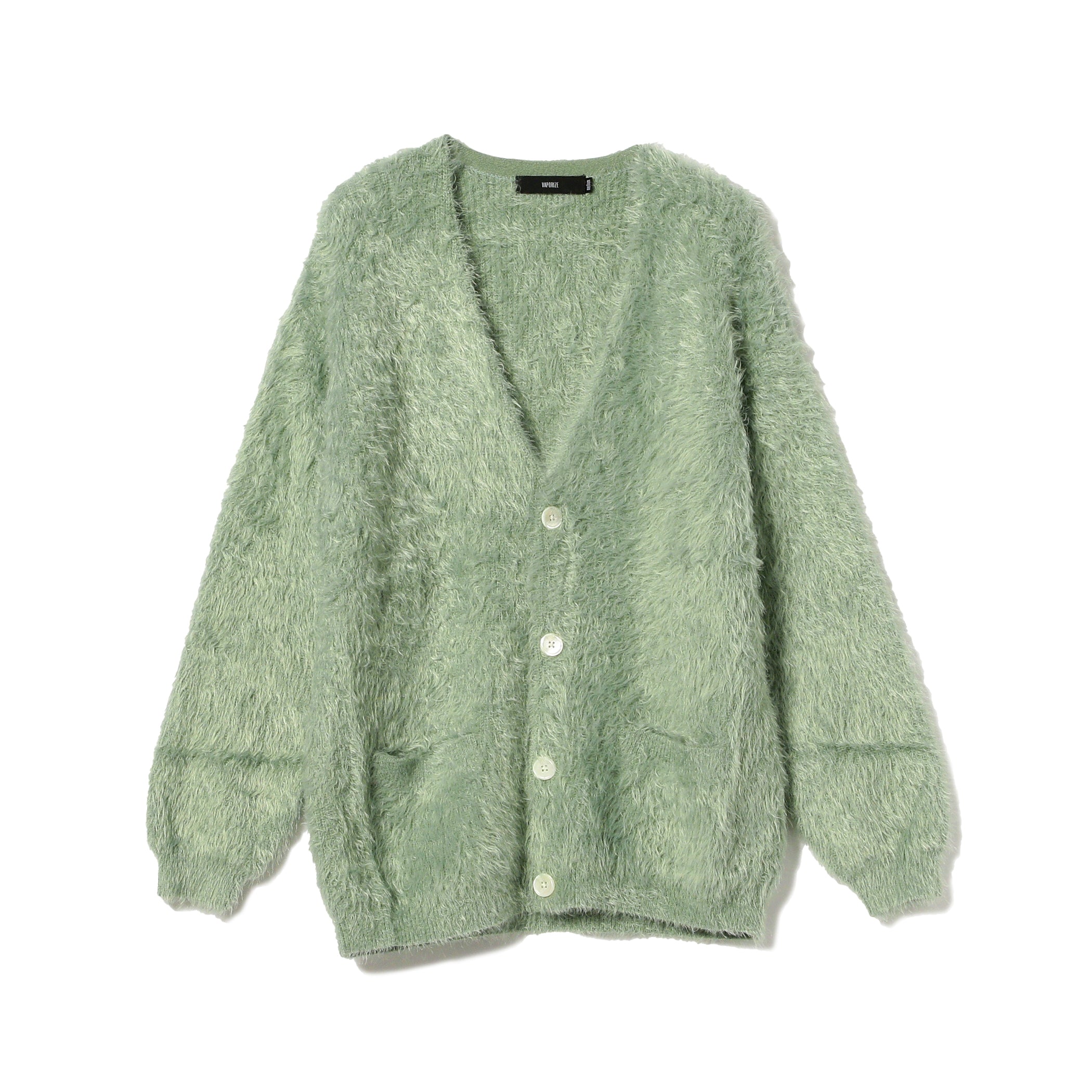 毛足の長い羽毛の様な素材感が特徴のフェザーカーディガン。ナイロン・アクリル・ウールを混紡した毛足の長い素材は、肌触りがよく独特な光沢感があるなど、着心地・見た目に優れる仕上がりです。ゆとりを持たせたルーズなシルエットながら、ベーシックなデザインのため様々なスタイリングと相性の良い1着です。
