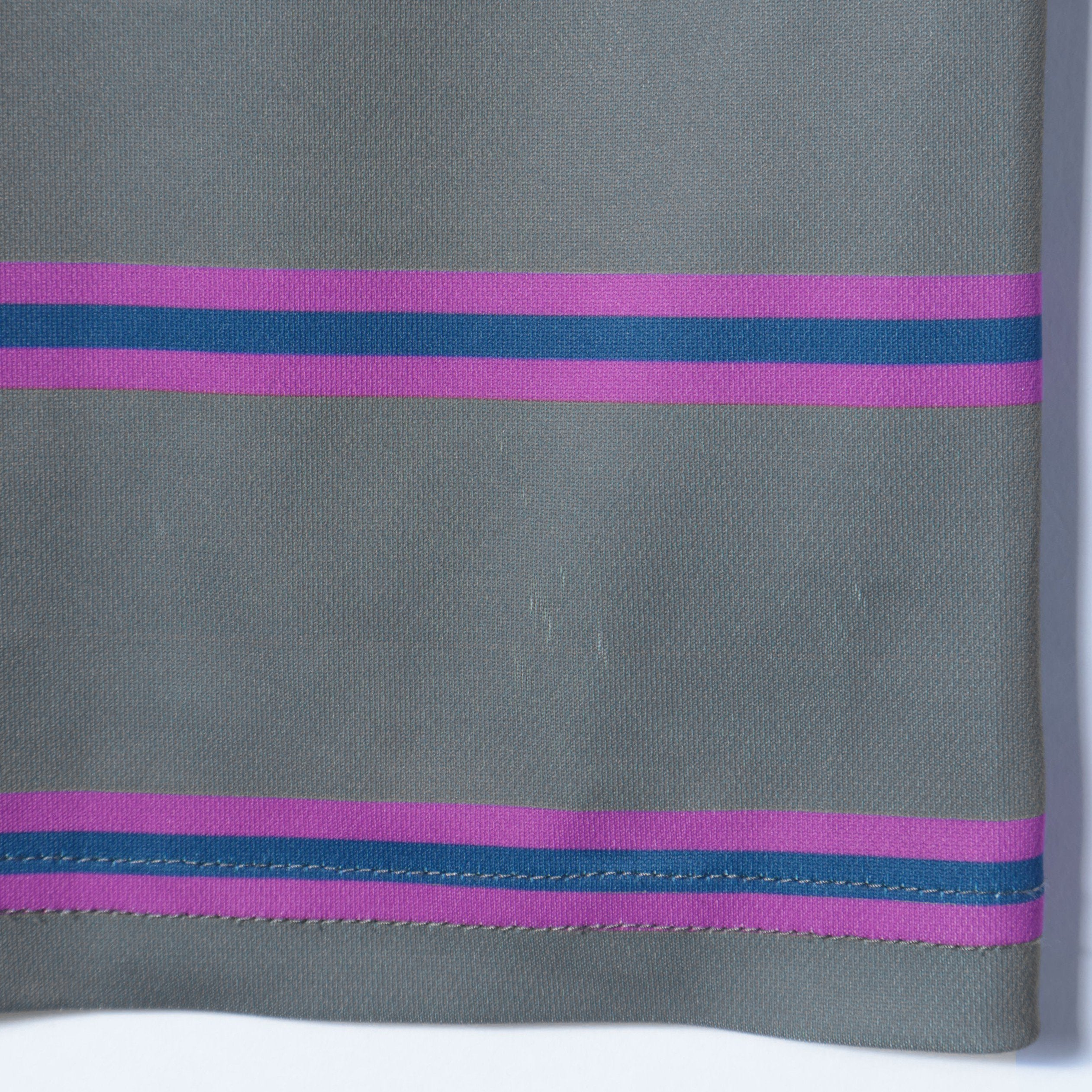 1980~90年代のゴルフルックを現代的な機能素材に落とし込んだ〈WEEKEND(ER)(ウィークエンダー)〉とのコラボレーションシリーズ。快適なポリエステル素材を使用した、存在感のあるボーダー柄モックネックシャツ。左裾には、今回のコラボレーションの為に作成したロゴをプリントしました。ネック部分の〈WEEKEND(ER)〉ロゴも別注ならではのデザインです。
