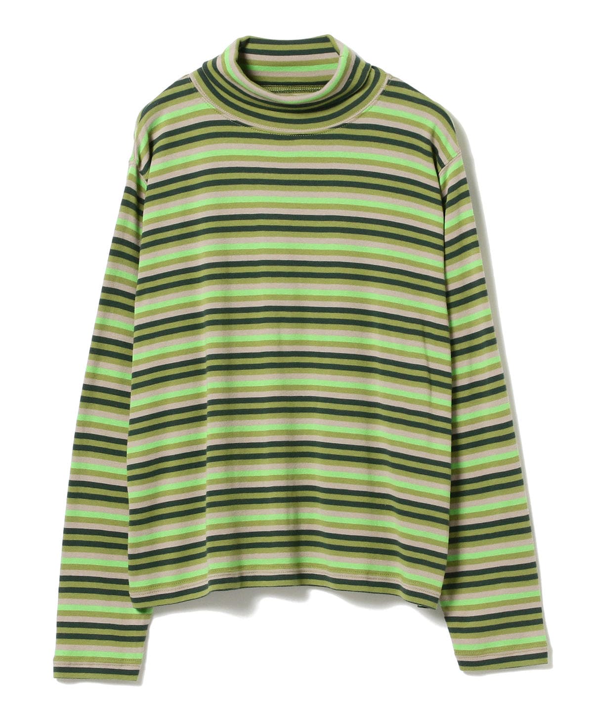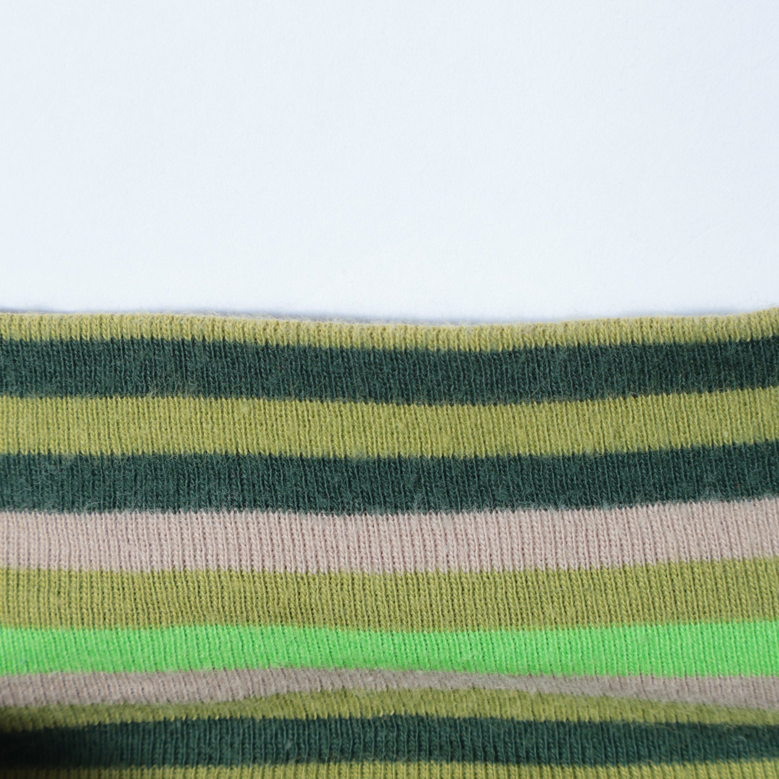 1960年代後半から1970年代前半気分のカラーリングを参考に落とし込んだオリジナルファブリックです。4色ボーダーの配色を工夫してランダムに配置することで、4色以上のマルチボーダーに見えるように仕上げた点がポイント。ソフトなコットン生地のため着心地良く、インナーでも1枚でも着用できるひと品です。