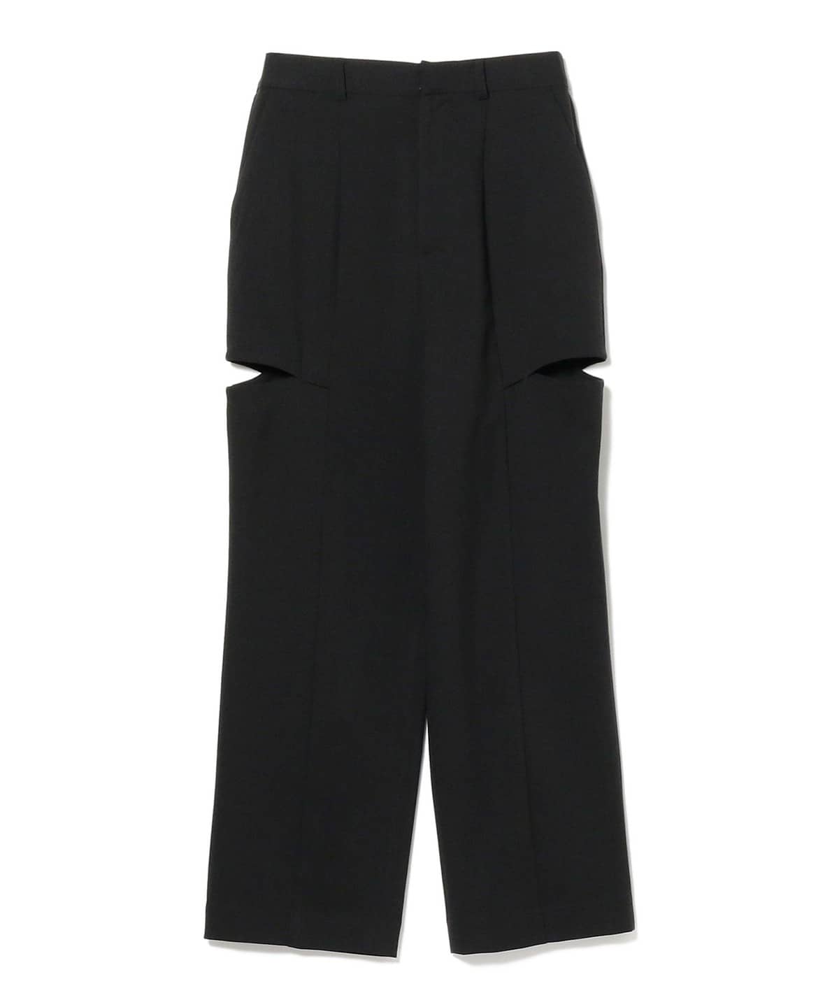 腿部分のカットアウトディテールがポイントのパンツ。大胆なデザインながら開きすぎず女性らしい肌見せになるように、カットアウト部分のサイズや位置にこだわりました。
