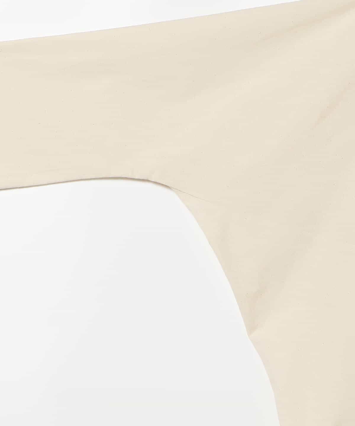 オーバーサイズで、暑い時にはシャツ、寒い時にはニットとインナーを自由に選べるデザイン。インサイド部分には大小多数のポケットを配し、マルシェで購入したフルーツやバゲット、ワイン等様々な物が入れることも可能。マルシェでつまみ食いしてこぼしても、インナーの洋服を汚さないのもオーバーオールデザインのポイントです。