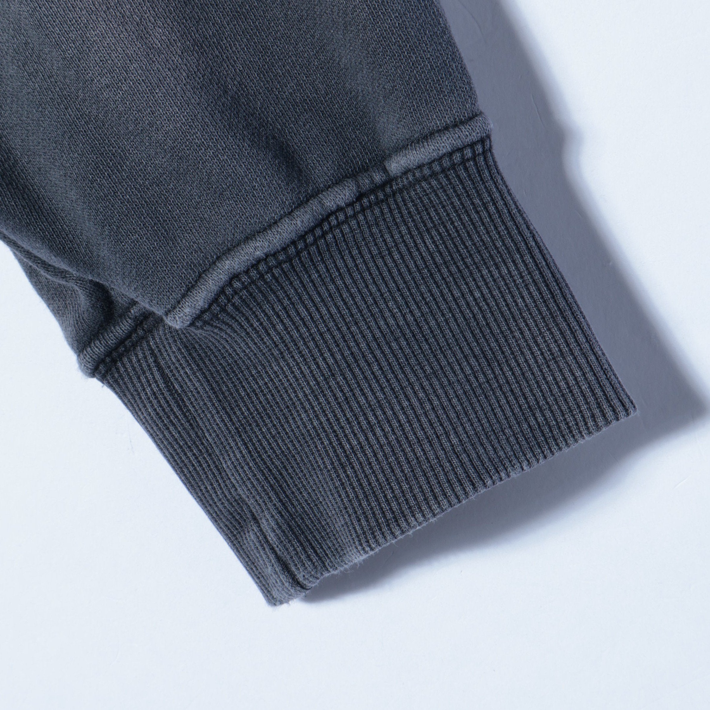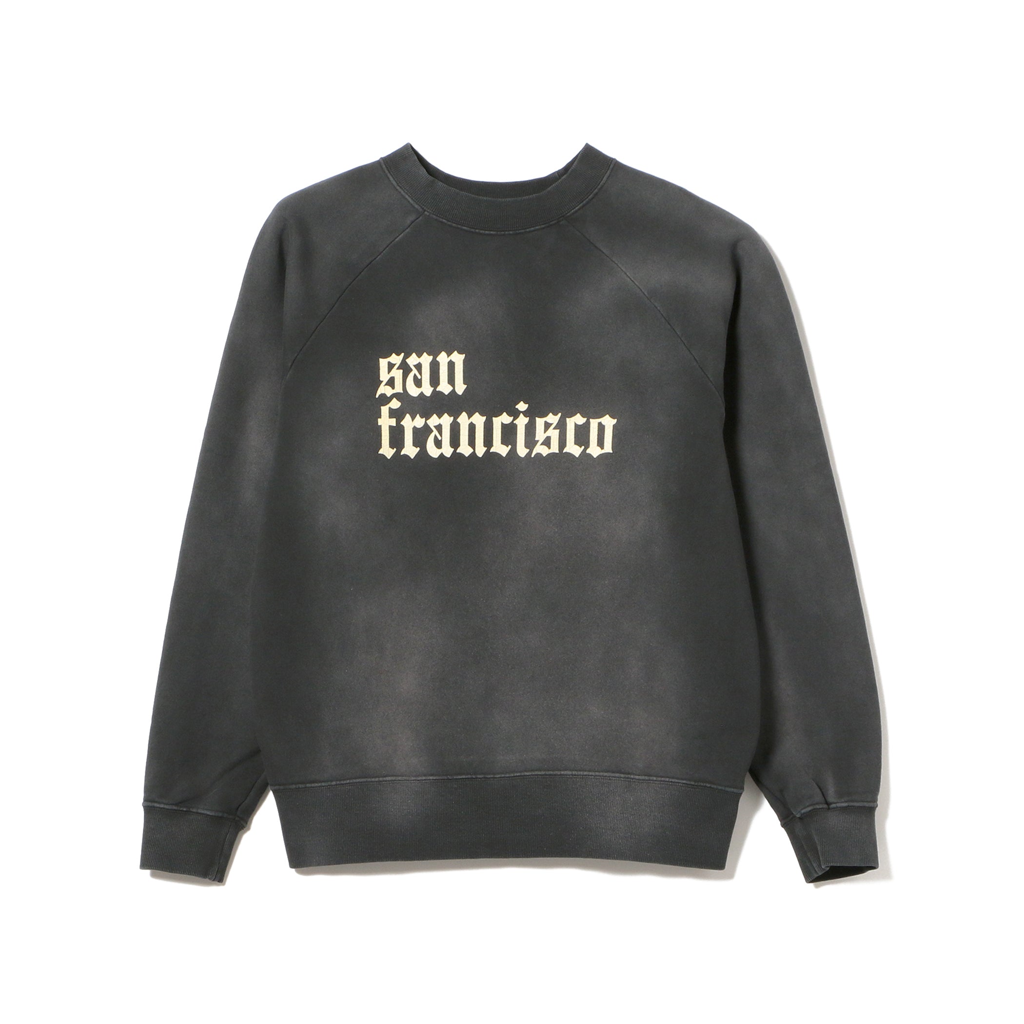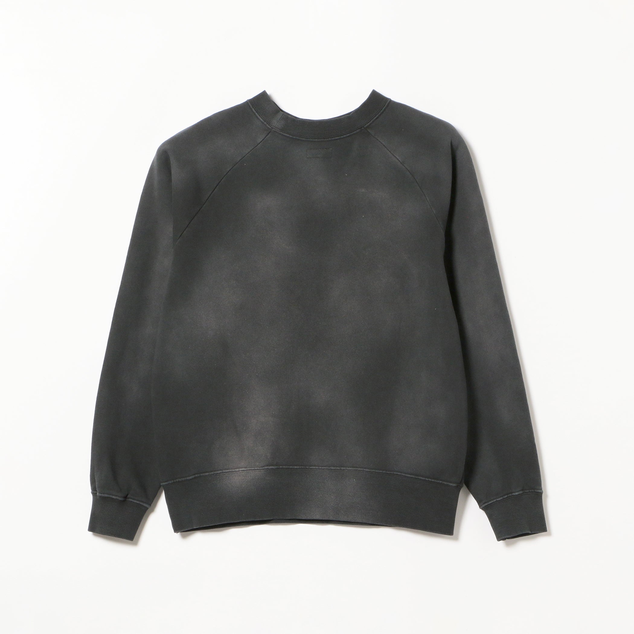 ヴィンテージを彷彿させる加工とプリント手法を取り入れたラグランクルースウェットです。プリント工程は、わざとらしいUSED感にならないよう緻密に調整を加えています。