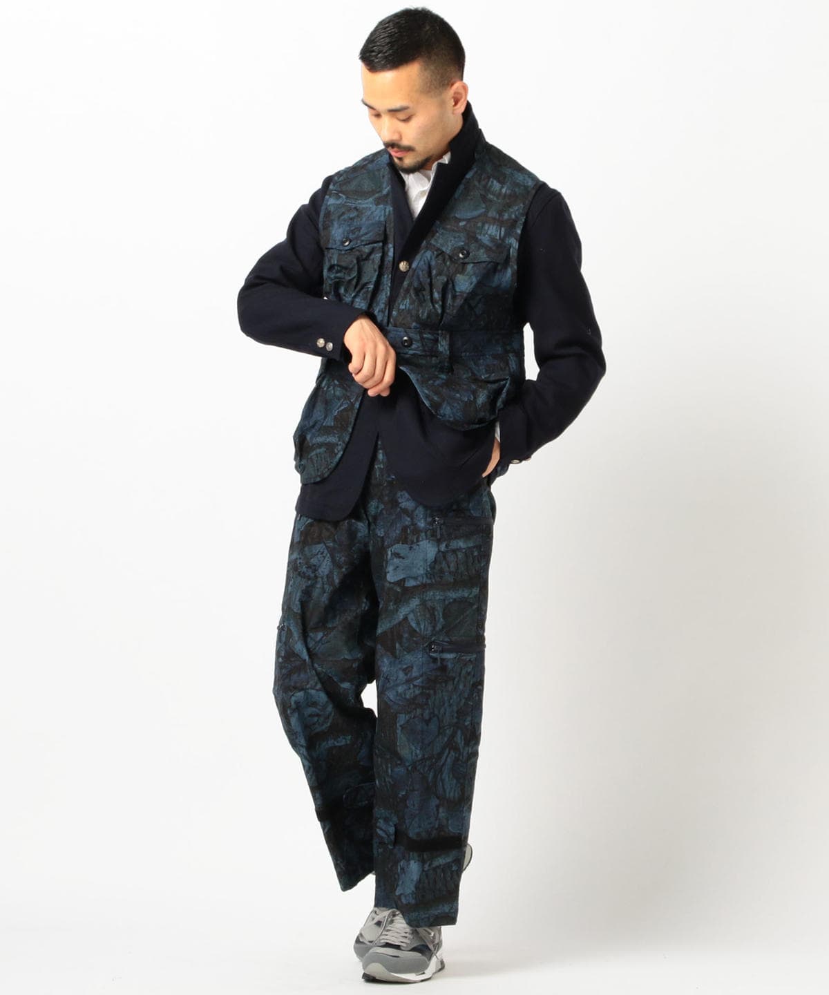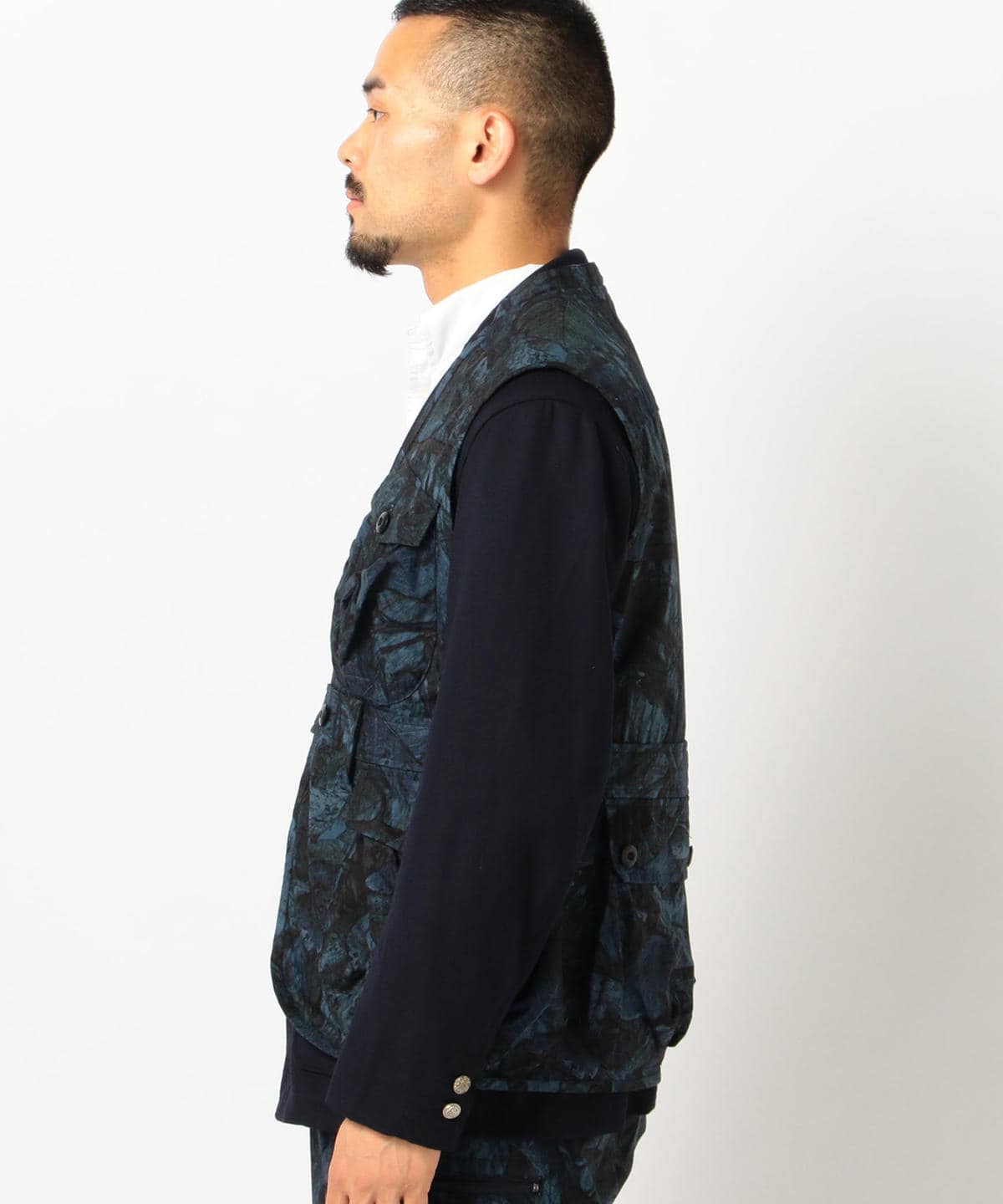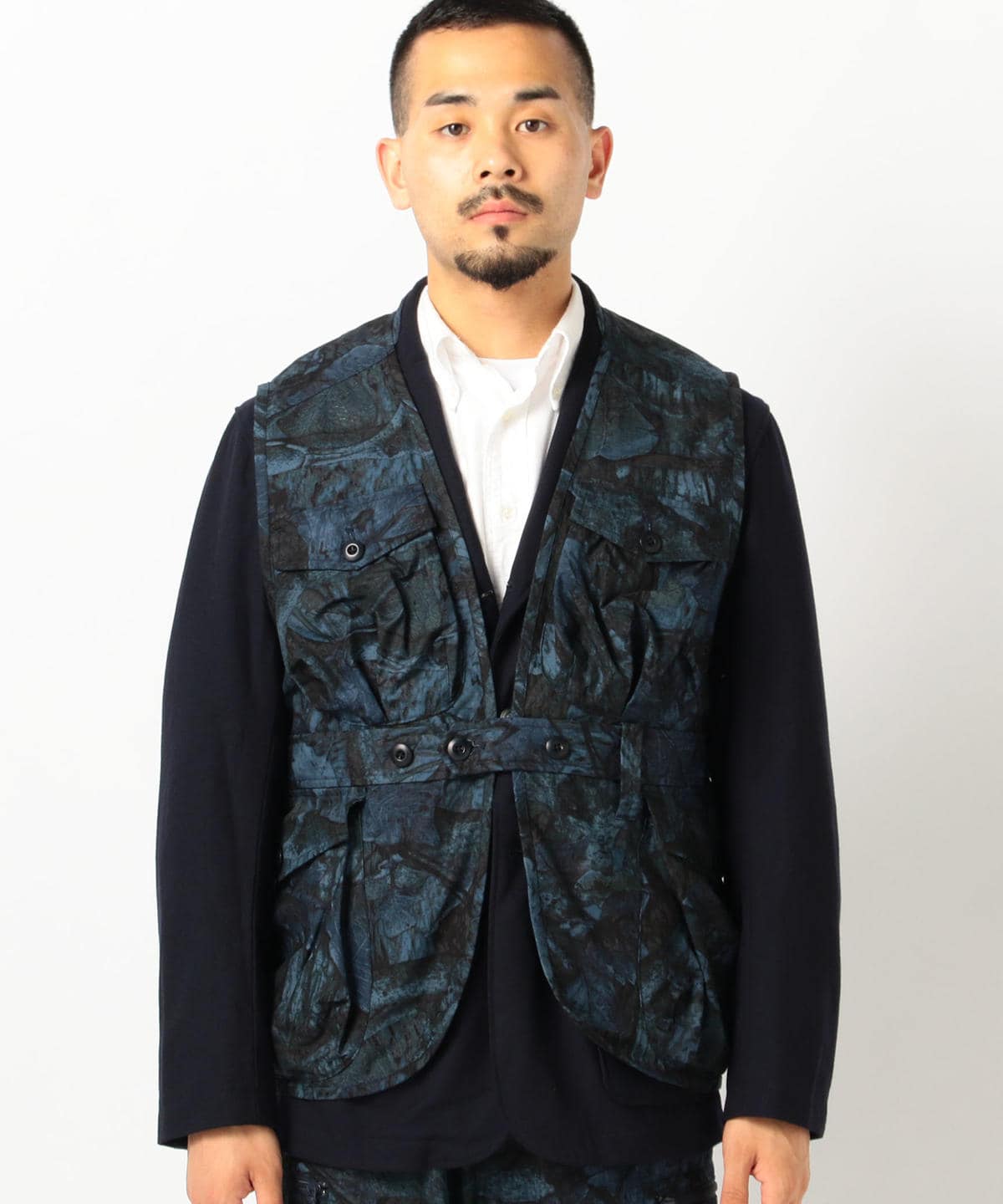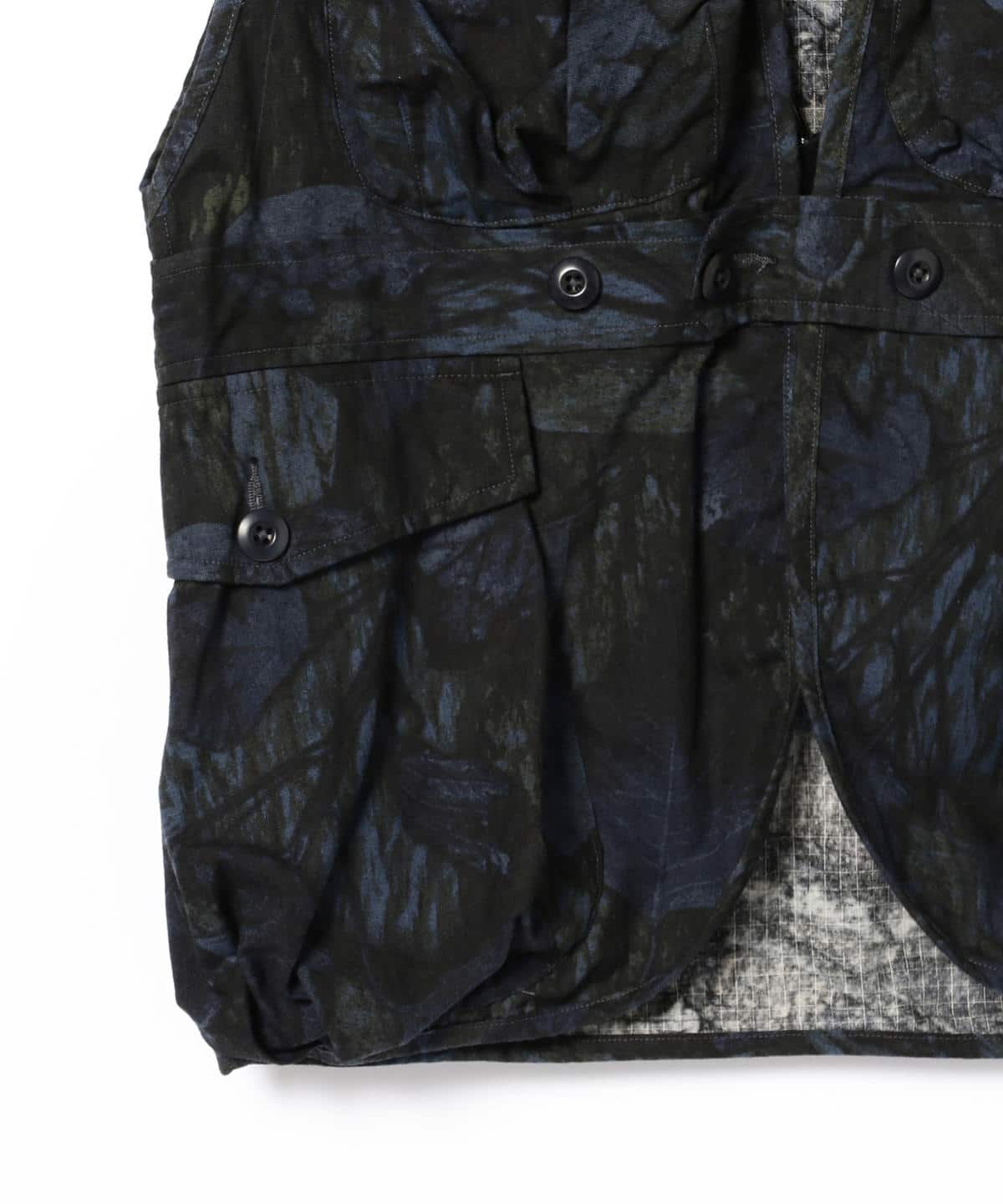 ブランドではお馴染みのアイテムであるフィールドベストを〈BEAMS PLUS〉で別注。軽くて丈夫なコットン100%のリップストップにリーフカモフラージュ柄をプリントして雰囲気抜群に仕上がりました。収納力のあるサイドポケットやフラップ付きの背面ポケット、サイズ調整が可能なベルトなど、こだわりのディテールにも注目。インナー、アウターどちらでもコーディネート可能なアイテムです。