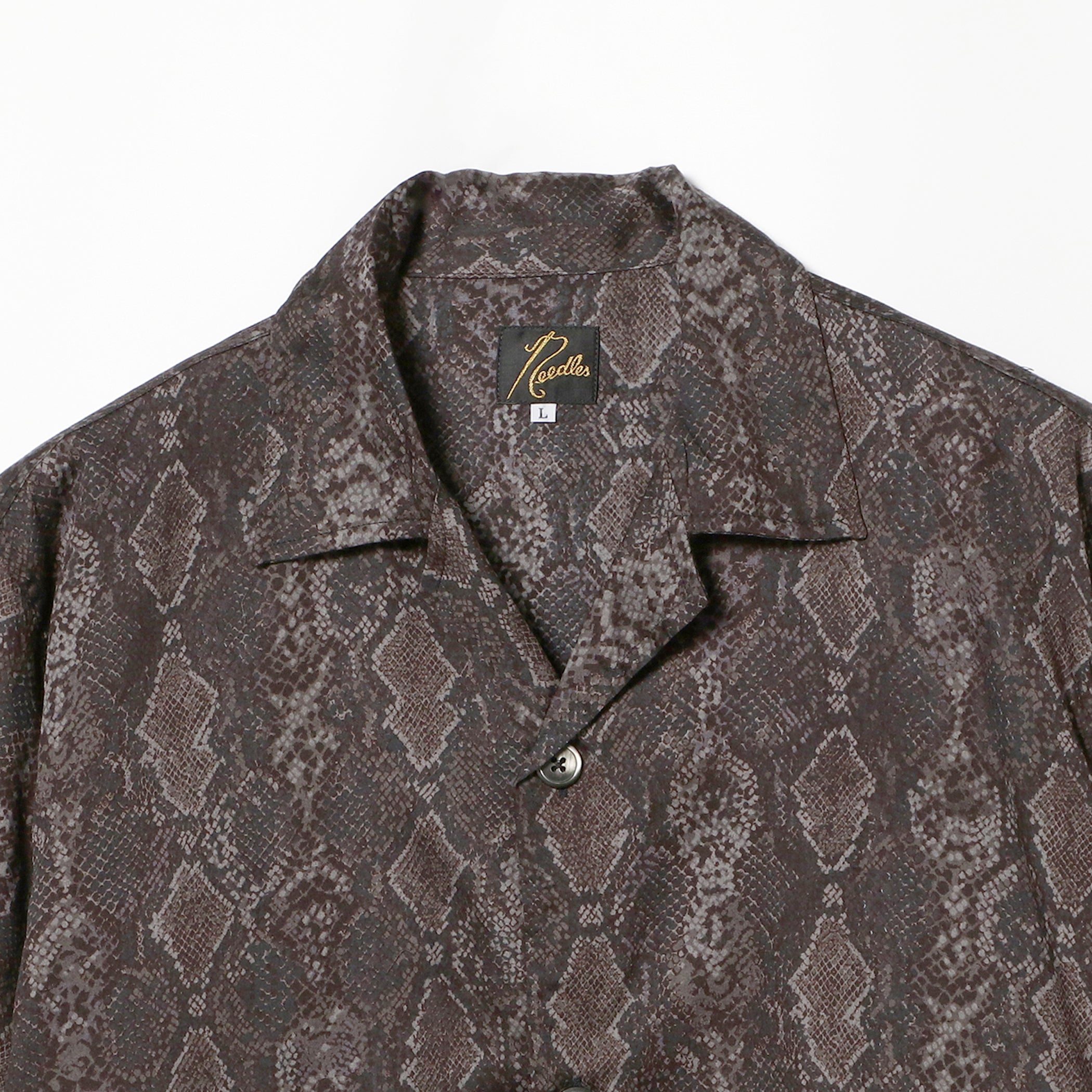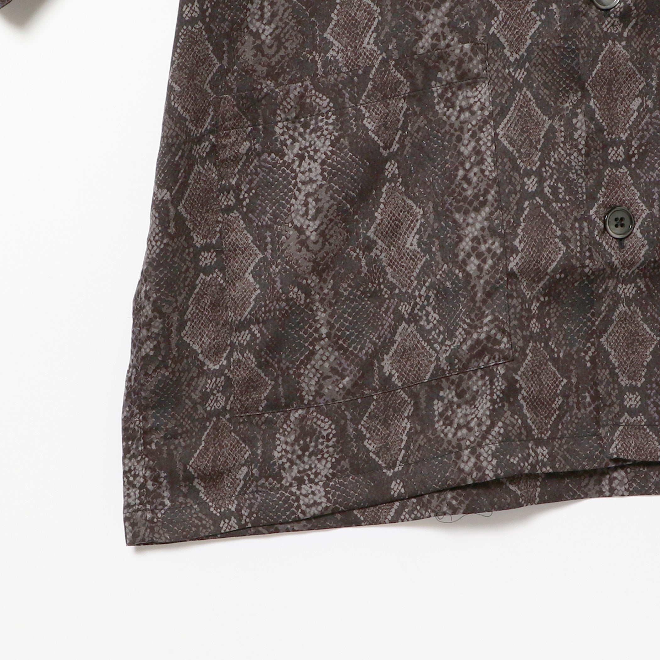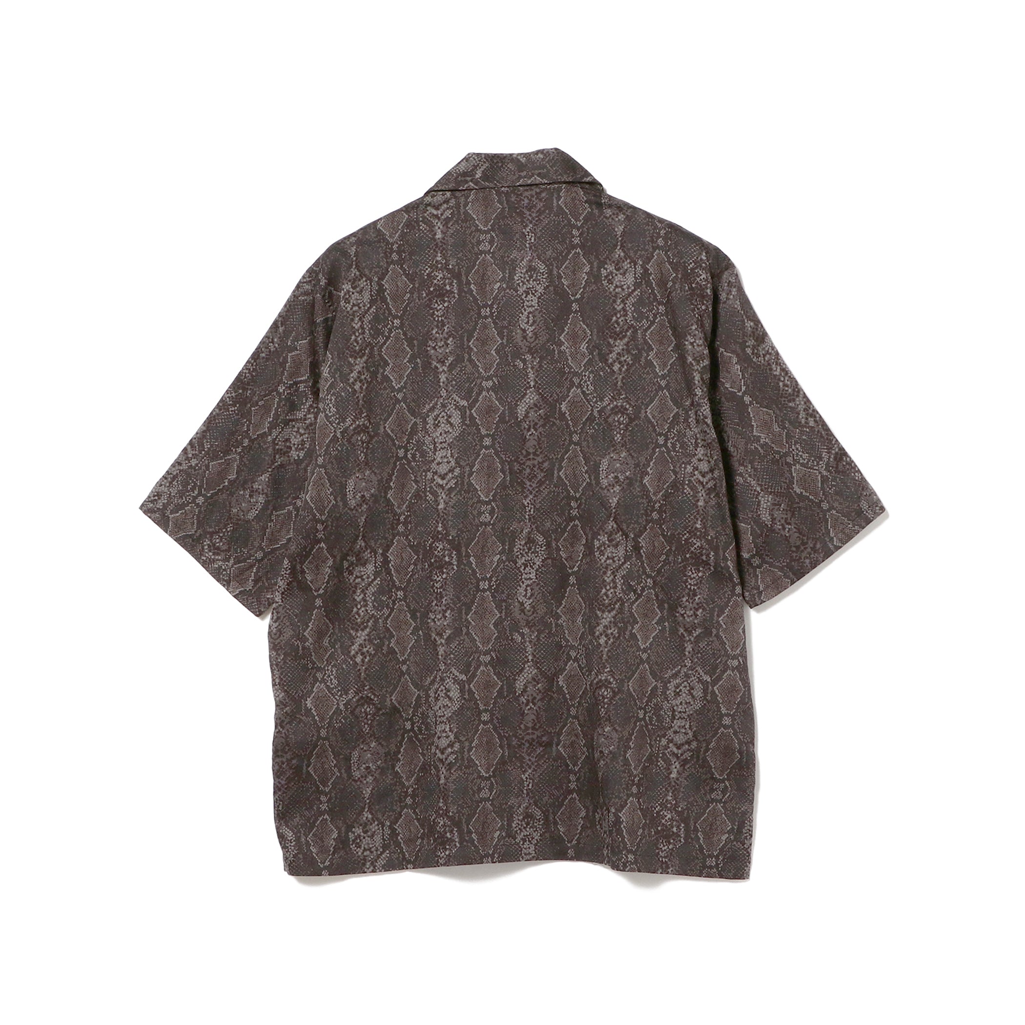 リラックスした雰囲気を感じるオープンカラーにボックスシルエットのシャツ。インパクトのあるパイソン柄がコーディネートにアクセントを与えます。