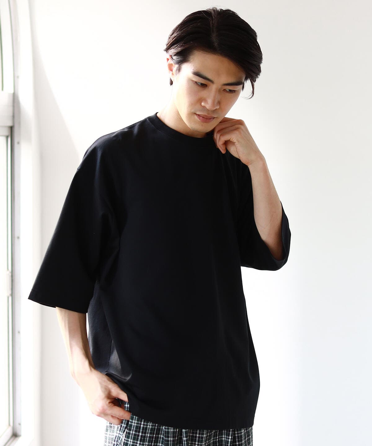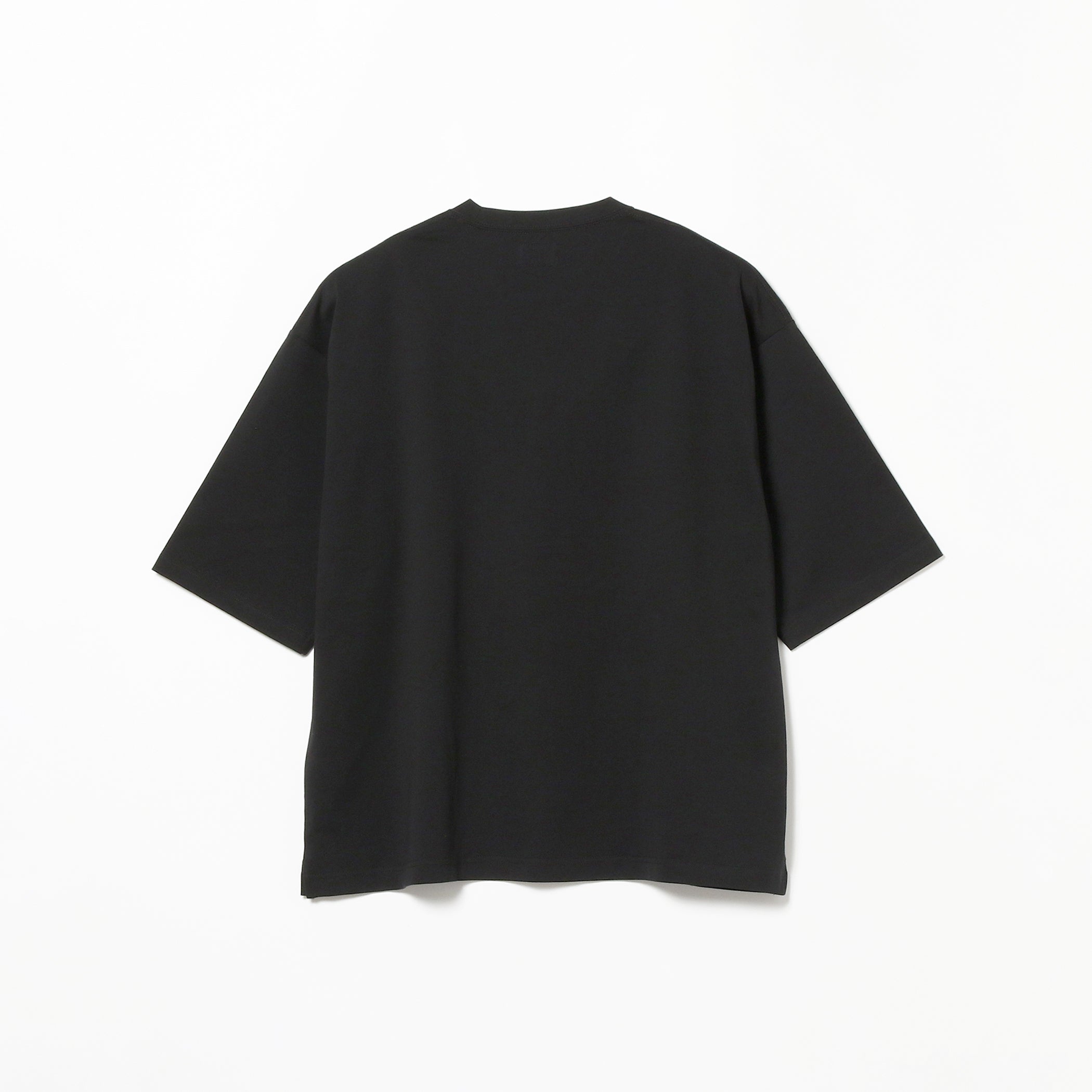 ハイゲージのシルケット天竺を使用したルーズフィットティーシャツ。柔らかく肌触りの良い生地感と生地表面の光沢感が特徴です。身幅と肩幅にたっぷりとゆとりのあるルーズフィットをベースに、袖丈を通常のTシャツよりも長めにすることで新鮮なシルエットに仕上げています。
