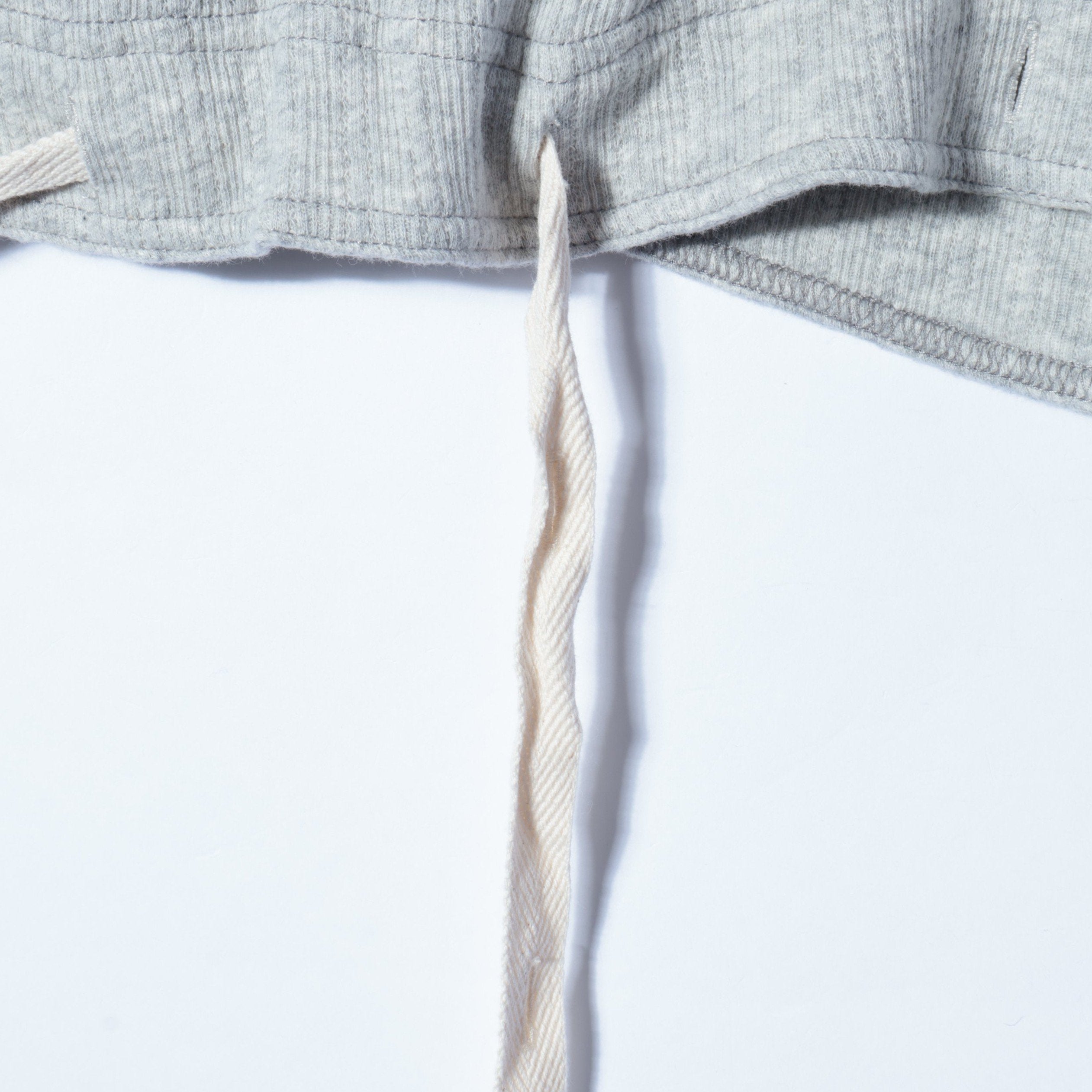 スウェーデン軍のアンダーパンツをイメージソースに製作いたしました。スパッツに元々あったテープのデザインを入れ込み、襟ぐりにも段リブを編み立てた贅沢なデザインが魅力です。透け感のあるジャカードテレコを採用している為、長いシーズン着用できます。