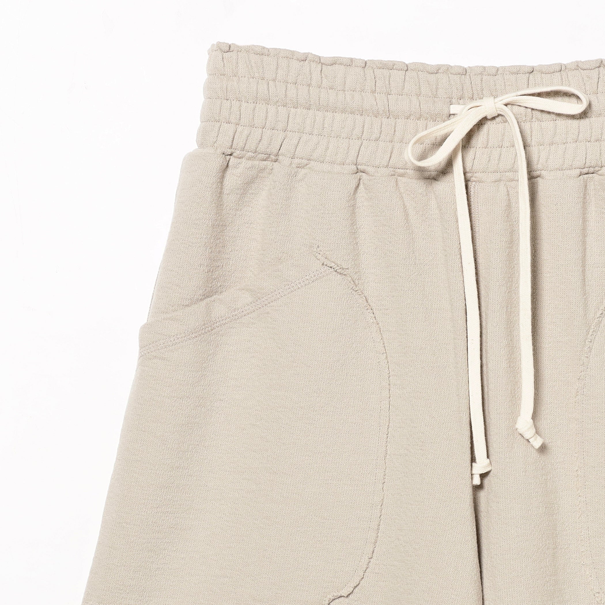 ゆったりとしており身体のラインを拾わないサイズ感。ウエストのドローコードにて調節が可能です。