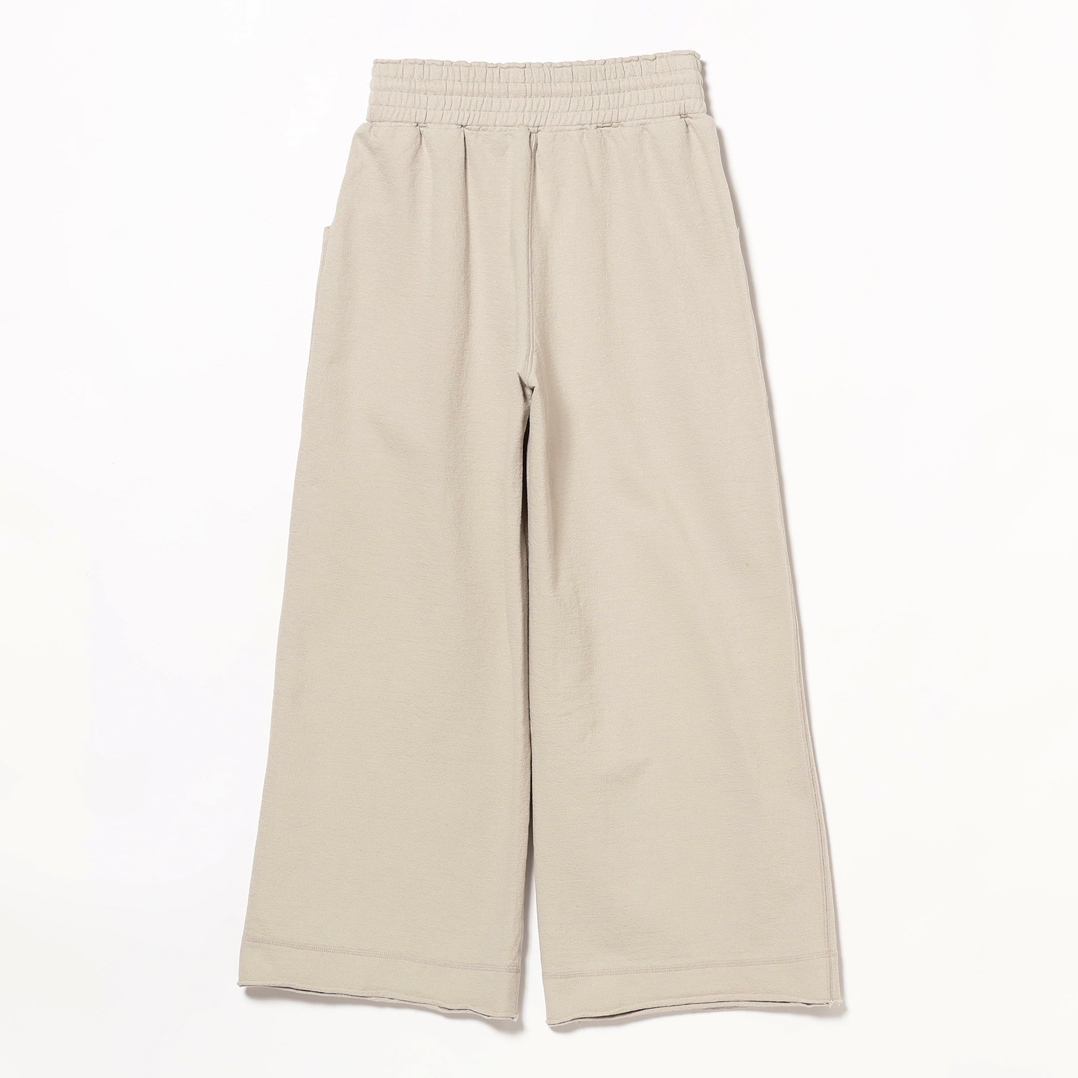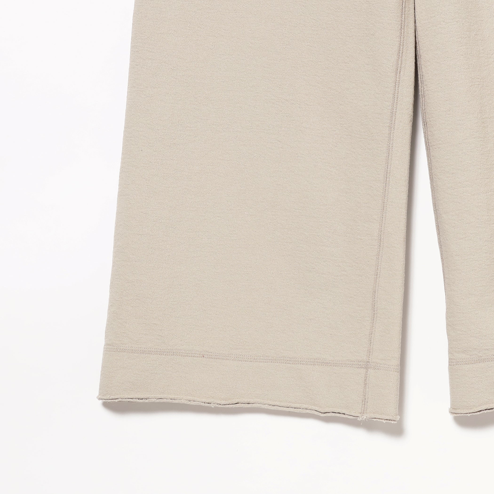 裾をカットオフしたデザインがポイントのイージーパンツ。肌触りが良く独特な表面感が特徴の天竺素材を使用しました。裾に向かって適度な広がりを出したフレアシルエットは嬉しい足長効果あり。適度に肉感のある生地の為、長いシーズンで着用いただけます。