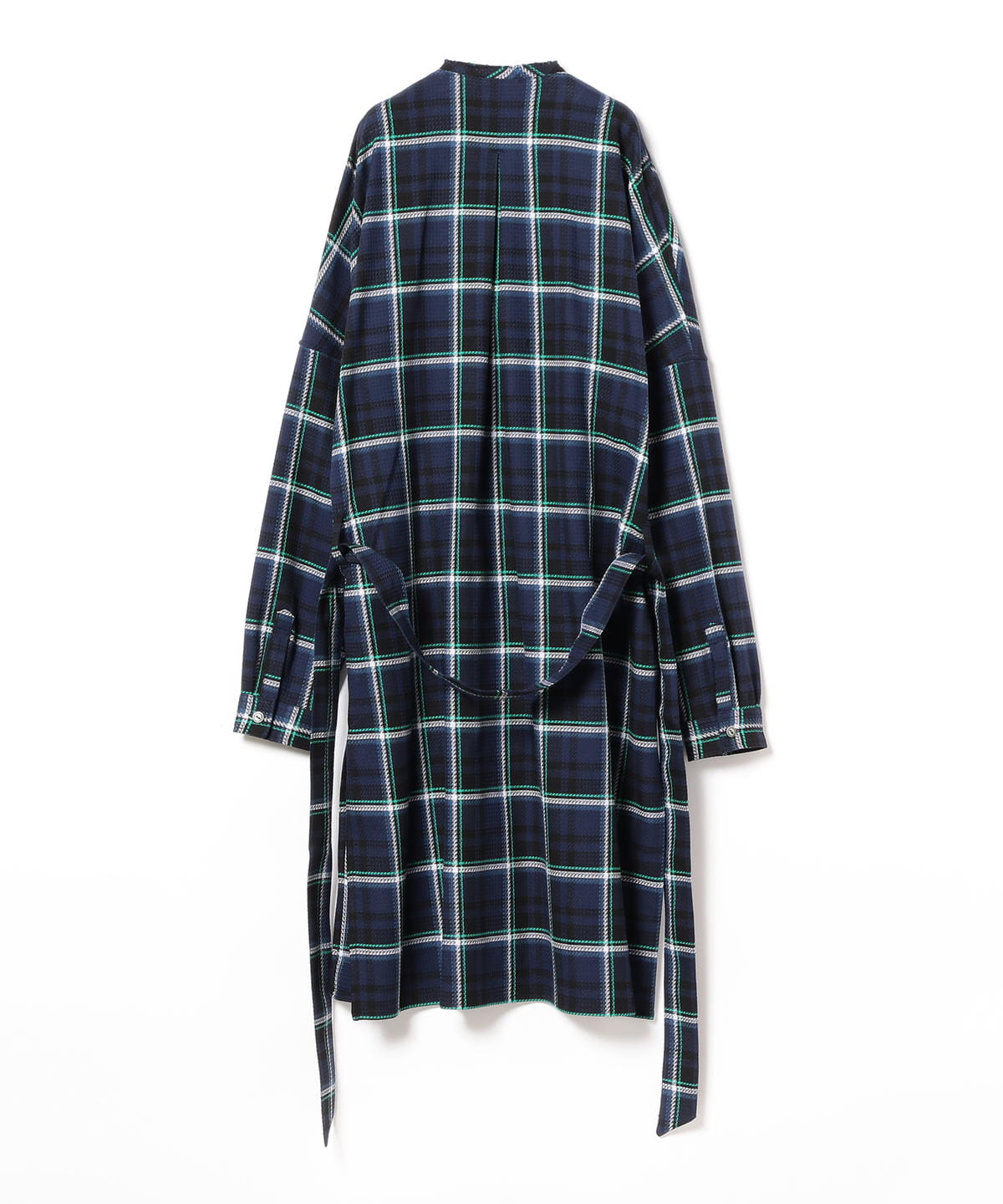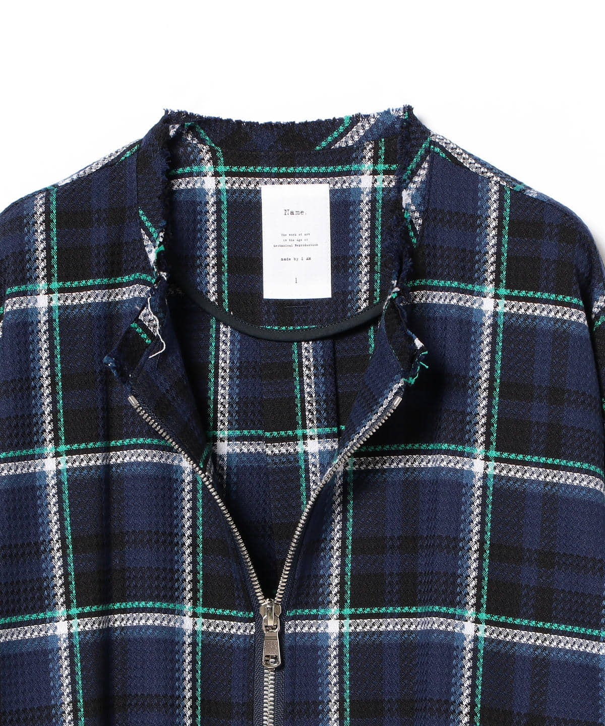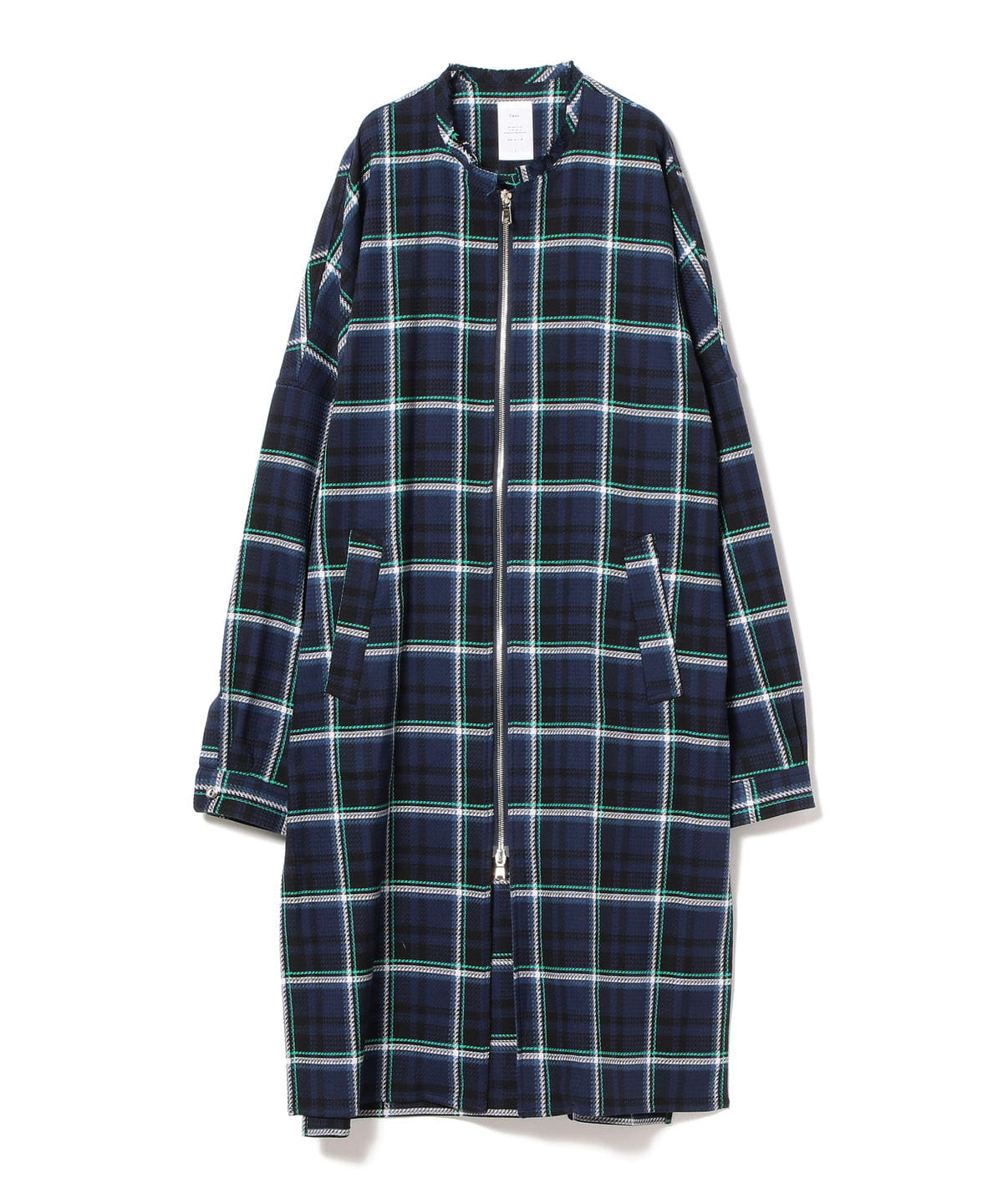 ストレッチ系のドビーチェック素材を使用したジップアップコート。ストレッチ糸の弾力を感じるタッチが新鮮で、表面に立体感のある表情が生まれます。アウターとしてもシャツとしても取り入れやすいアイテム。前を開けてさらりと合わせたり、アウターから覗かせる着方もおすすめです。