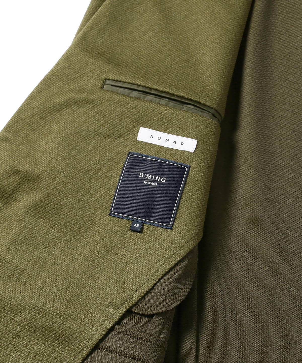 〈B:MING by BEAMS〉らしいビジネスカジュアルスタイルを提案するNOMADライン。タイドアップスタイルとして十分通用するルックスでありながら、カジュアルセットアップとしても固すぎない仕様と素材でON/OFF両方のシーンに対応したユーティリティーウエア。