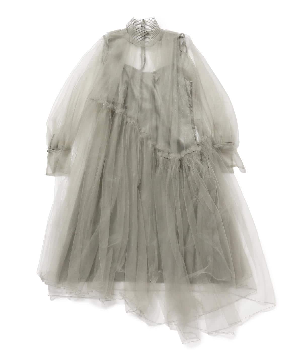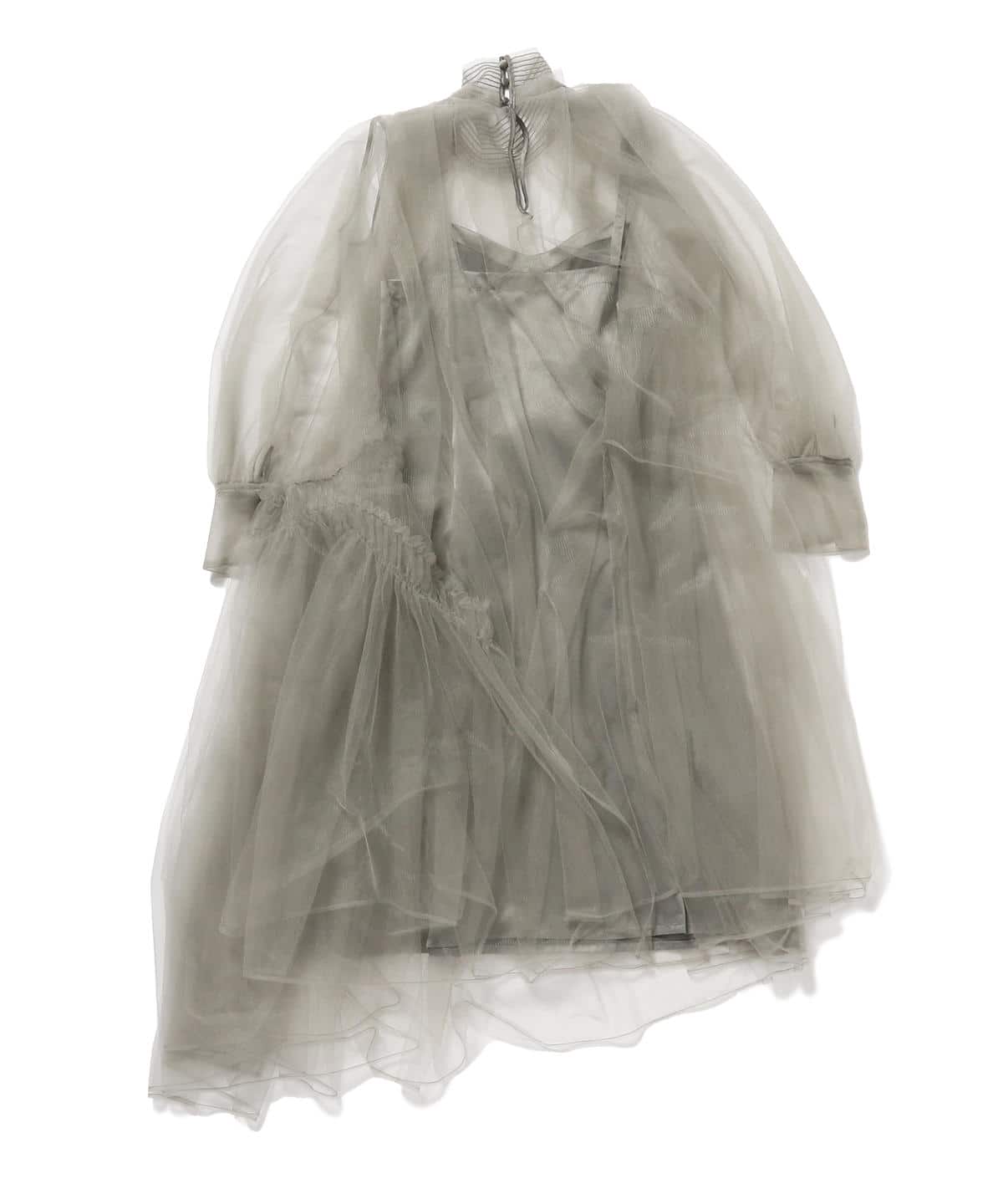 〈Chika Kisada( チカ キサダ)〉のインパクトたっぷりのチュールワンピース。たっぷりのギャザーが入ったシルエットと、シアー感、アシンメトリーなデザインで存在感抜群。ドレッシーにはもちろん、カジュアルダウンした着こなしもおすすめ。レイヤードスタイルの幅が広がる1枚です。