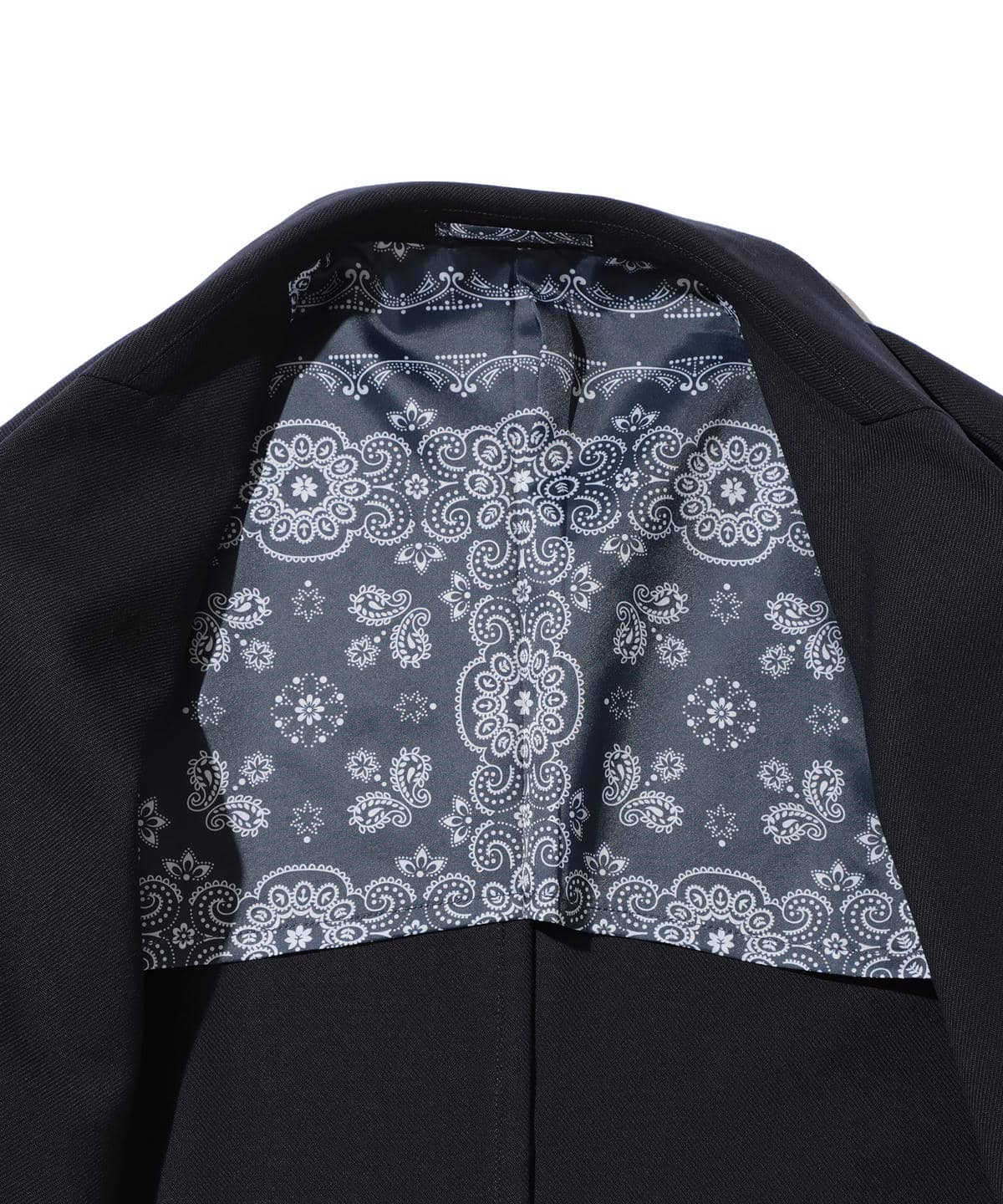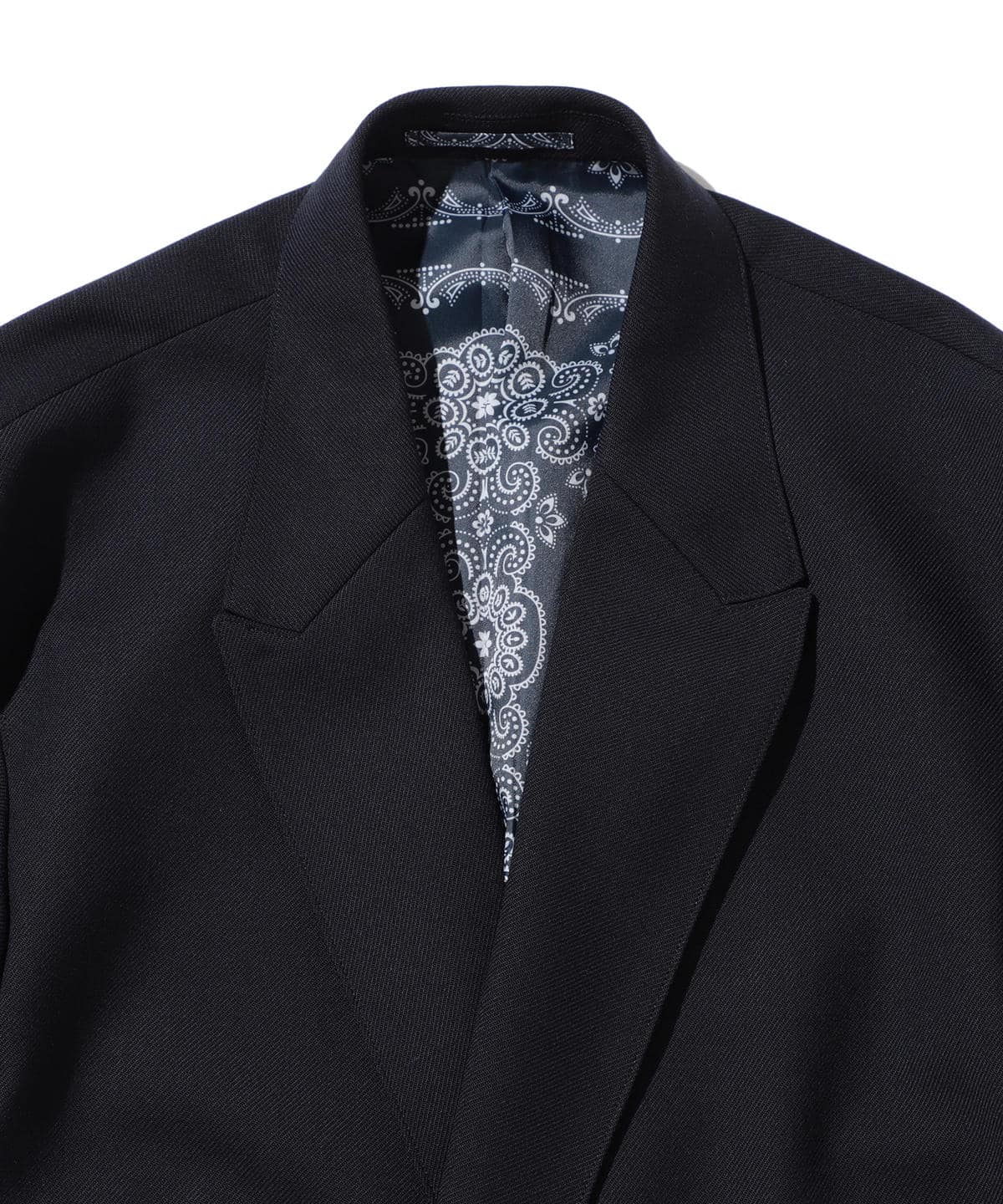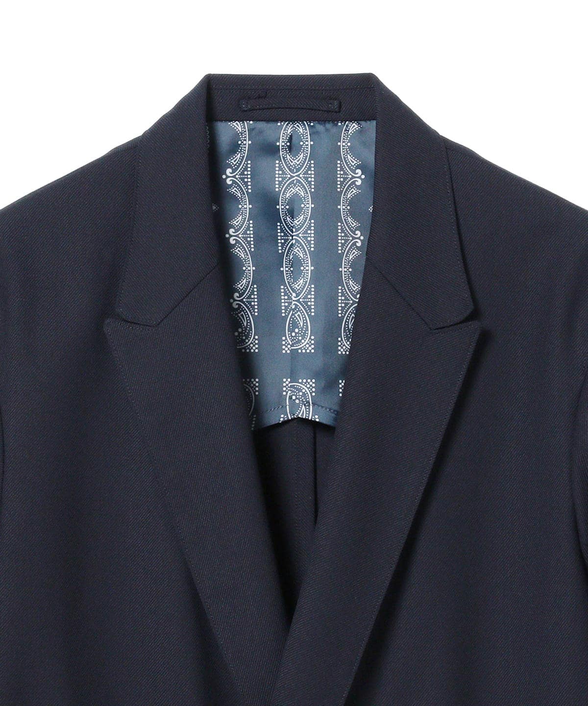 ドライタッチでヴィンテージライクなウールツイル生地を使用。ポリエルステルを含み独特の落ち感も加わっています。背裏と袖口裏にはペイズリープリントの裏地を使用。