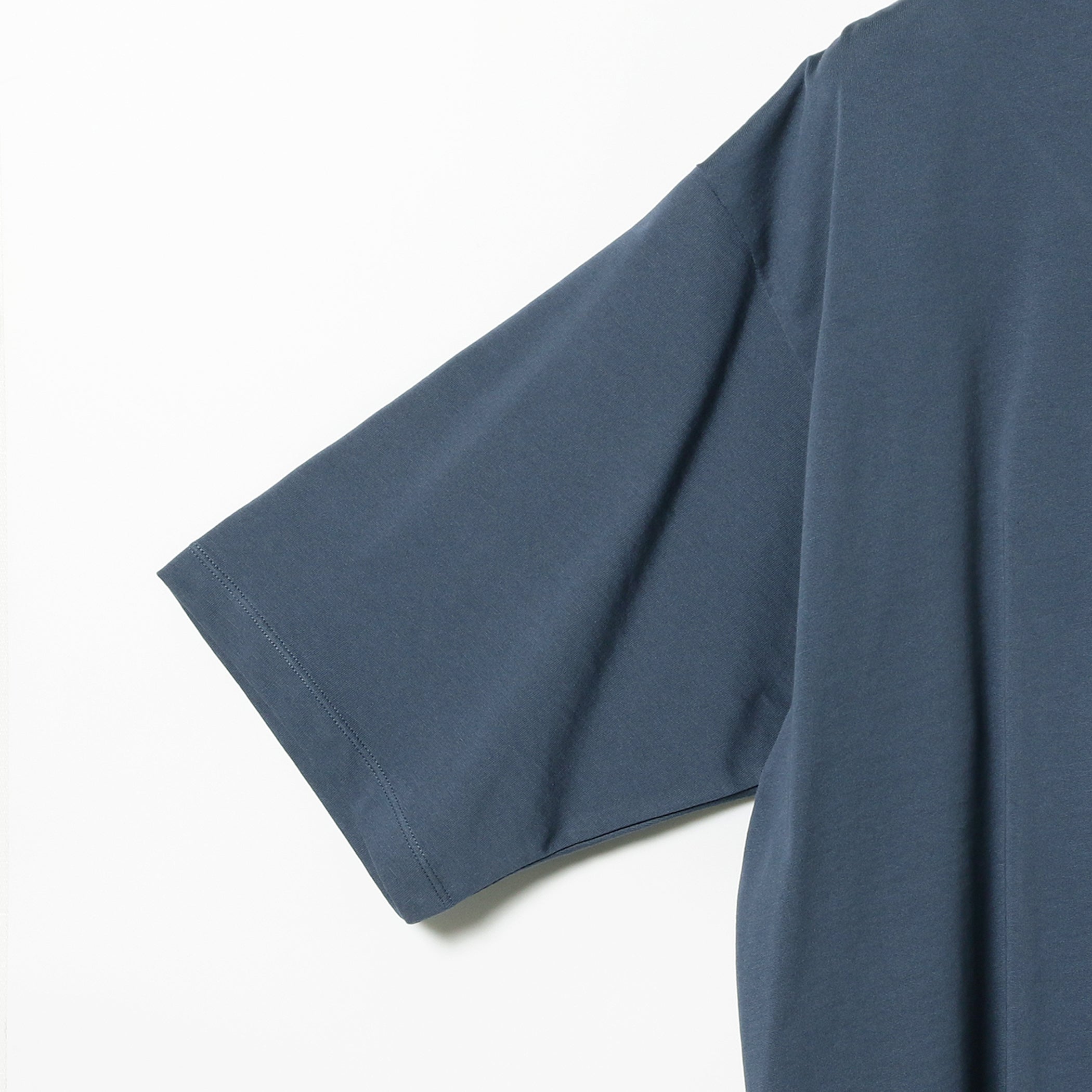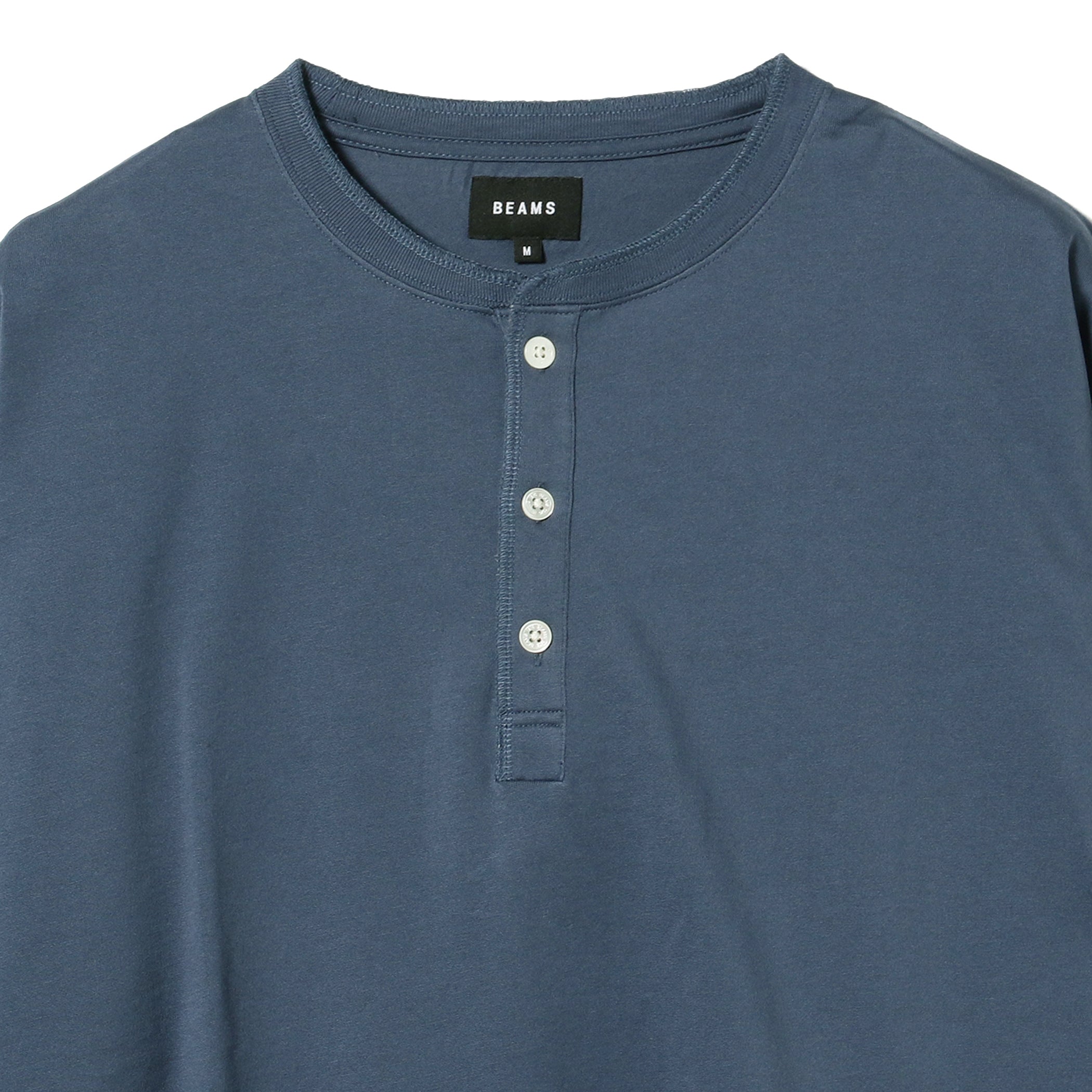 ハイゲージのシルケット天竺を使用したルーズフィットのヘンリーネックTシャツ。生地表面に光沢感と肌触りの良い着心地を実現。リブ周りにみられる振りミシンなどアメリカのヴィンテージウェアにみられるディテールを踏襲しつつも、リブ幅や前立てを通常よりも細く設定した現代的な仕上がりになっています。インナー使いはもちろん、上品な質感は単体での着用にも存在感のある1枚です。