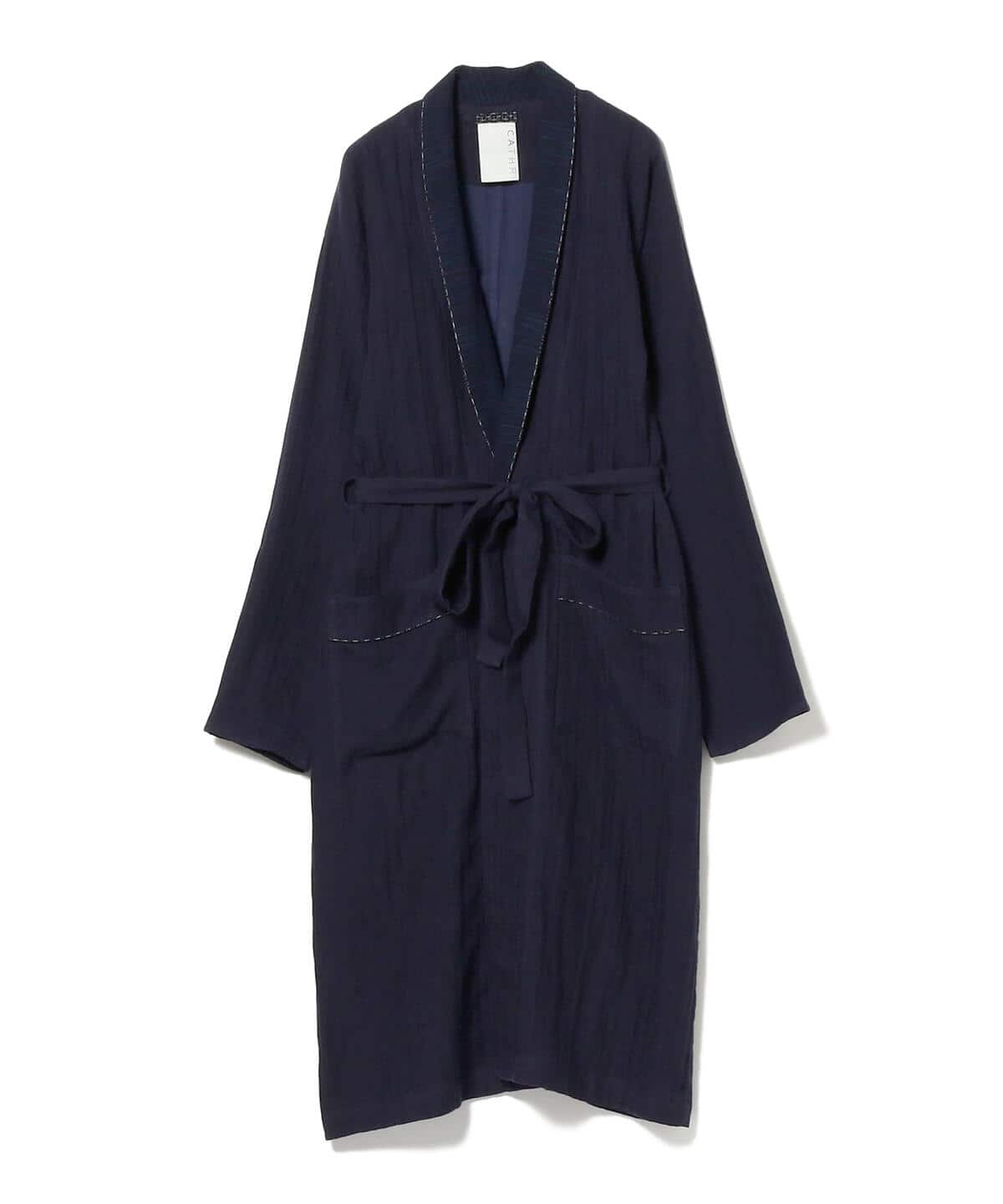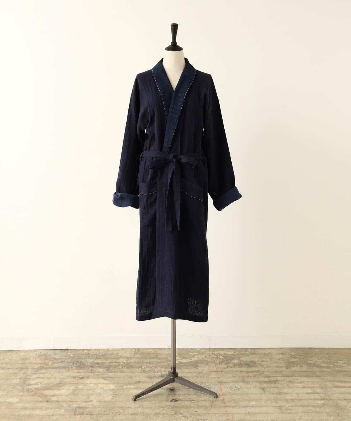 重要無形文化財の『久留米絣(くるめがすり)』と着心地の良いコットンリネンを組み合わせたガーゼガウン。職人が丁寧に仕上げた手織りの『久留米絣』を襟ぐり部分に採用しました。ポケットと襟のパイピングには機械織りの『久留米絣』を使用。2種類の絣のコントラストが楽しめて、ユニセックスでお使いいただけるシンプルなデザインです。通気性と肌触りの良い素材なので、さらりと羽織るライトアウターとして活躍。パーカなどのフーディートップスやデニムとレイヤードして、カジュアルにコーディネートしてもいいですね。ちょっと贅沢なルームウェアとしてもおすすめ。伝統の『久留米絣』とファッションを融合させた〈CATHRI(カスリ)〉ならではのスペシャルアイテムです。