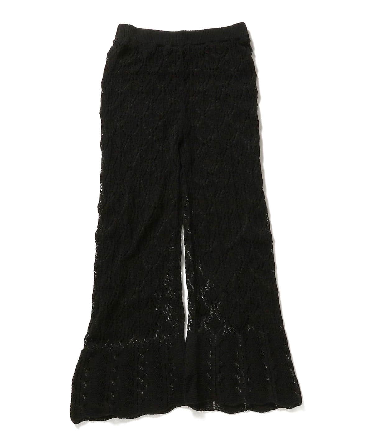 クロシェをモダンな柄に落とし込んだパンツ。コットンを軸にナイロン繊維を巻き付けた独特な糸を使用した表面感のある生地感が魅力です。かぎ針クロシェのような優しい風合いと、裾にプラスした透け感でいつもの着こなしを女性らしくアップデートしてくれるひと品です。