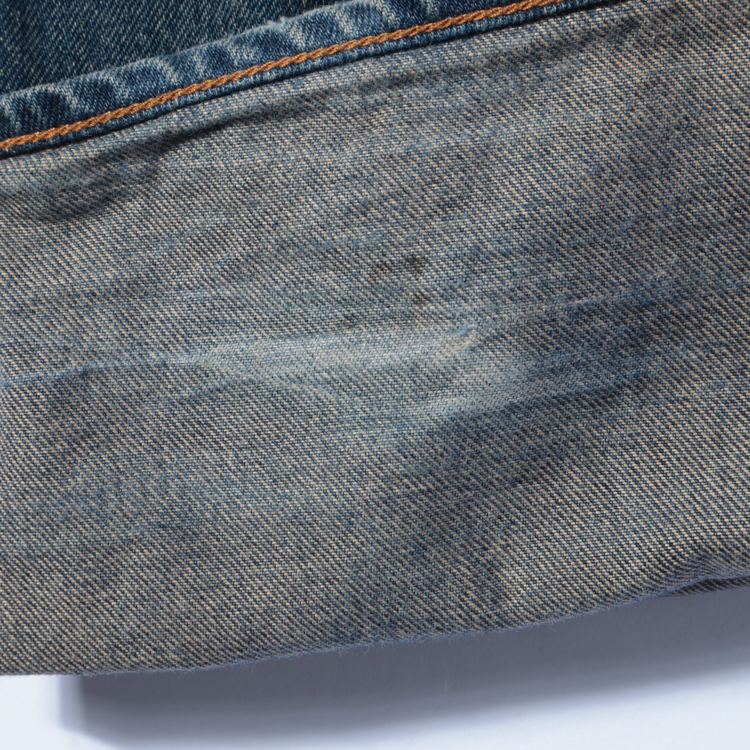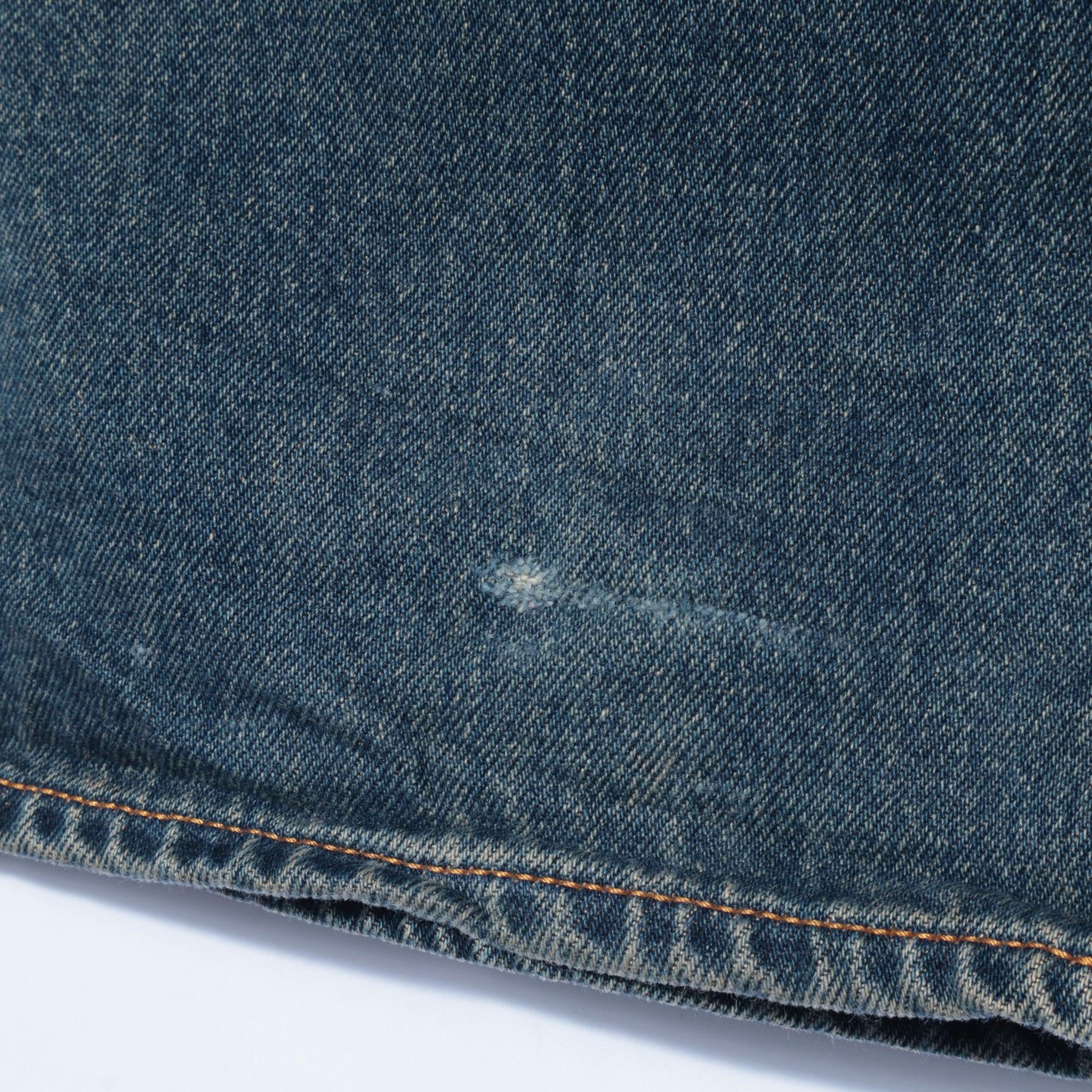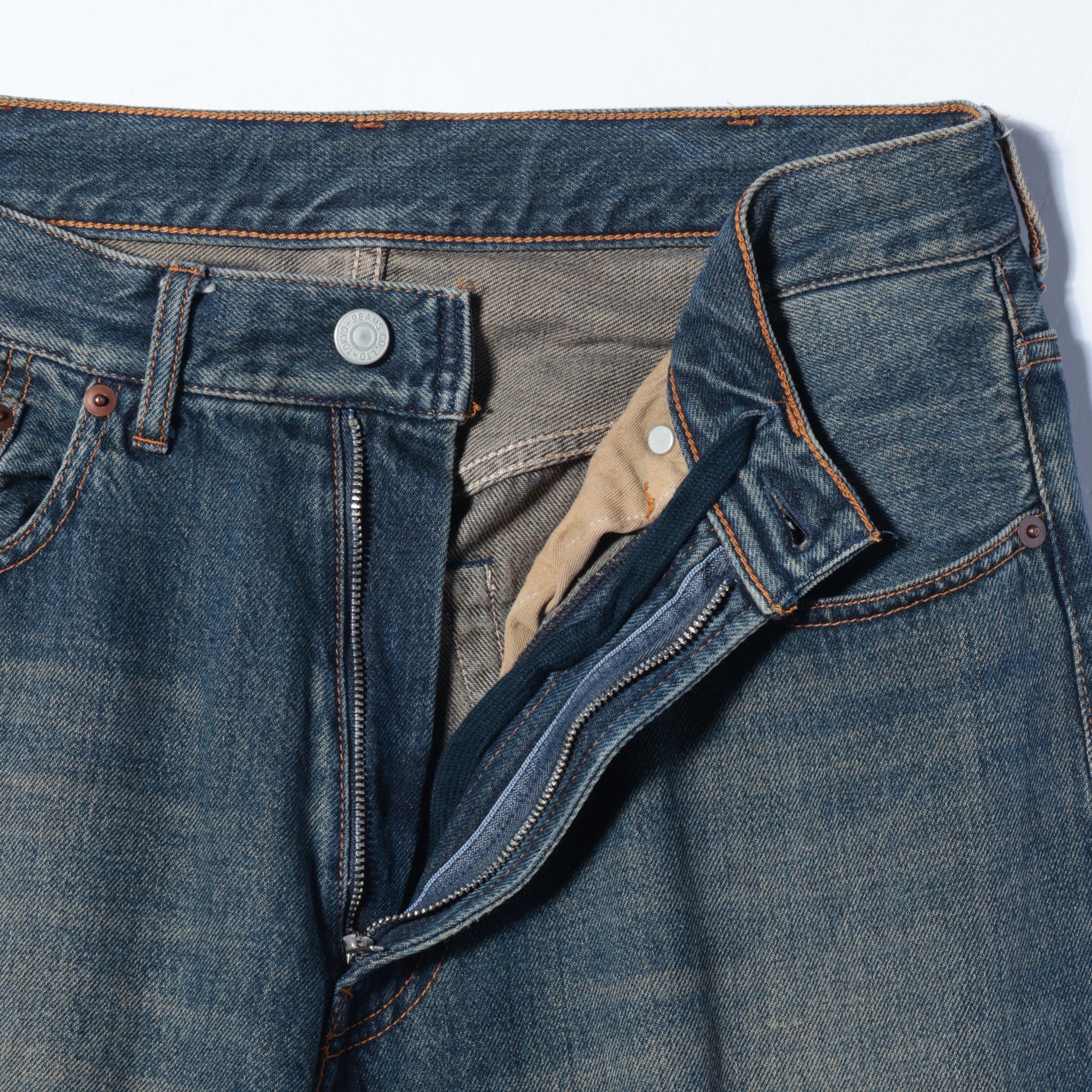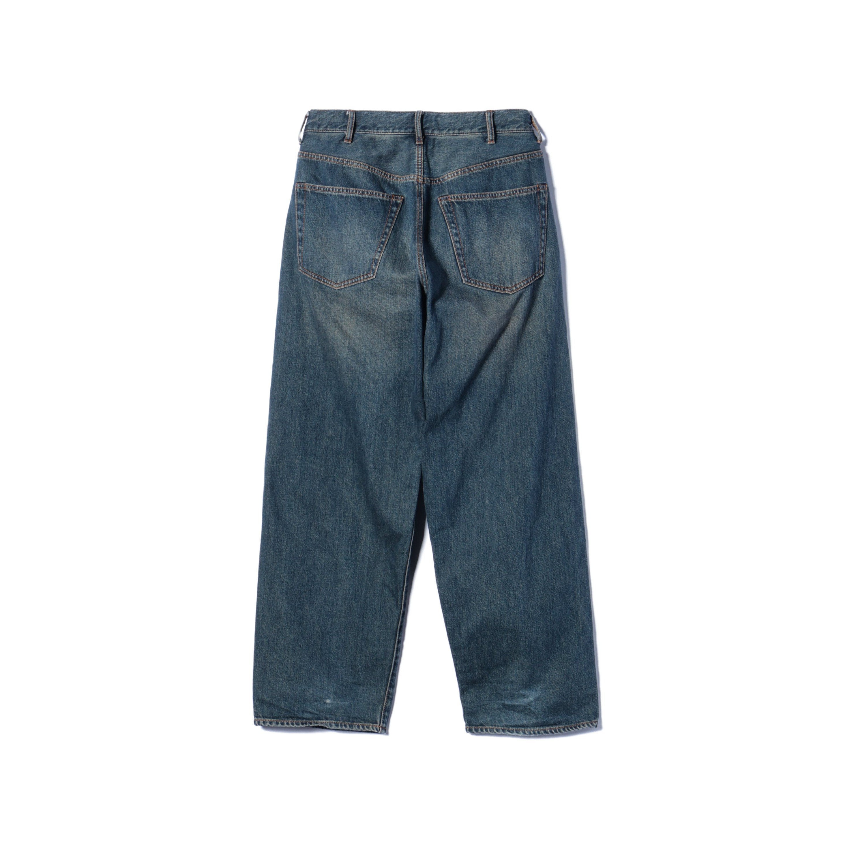 ■デザインコットンデニムに加工を施した定番の5ポケットデニムパンツ。ステッチの表糸と裏糸の配色や、後ろパッチポケットの隠しカンヌキなど、ヴィンテージデニムのディテールを踏襲したこだわりの一本。