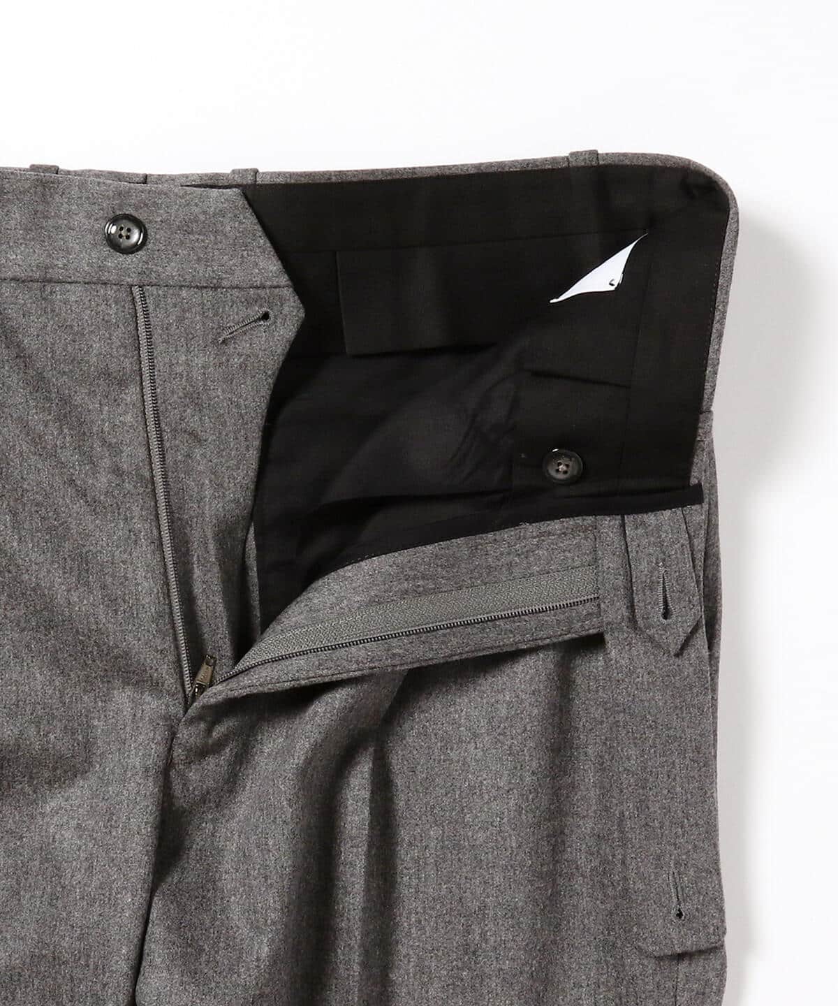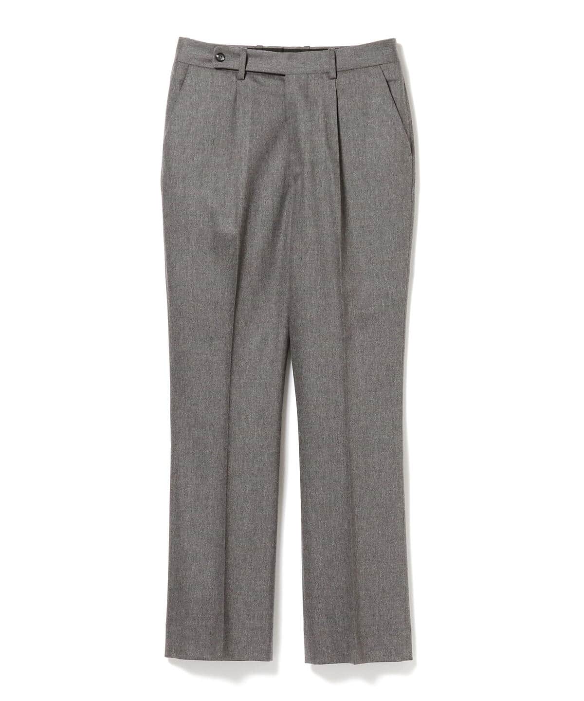 程よい股上と、ストレートに近いシューカットシルエットが特徴の〈erne〉のスラックス。別注ポイントの腰裏のマーベルト仕様や、柔らかなフランネル素材による裾口にかけて生まれるドレープも魅力。ドレススタイルにもカジュアルにも幅広く活躍する、スタイリングに取り入れたい1本です。