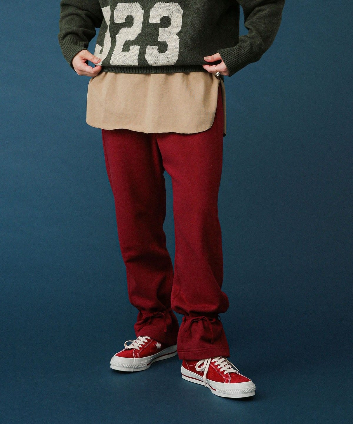 1930~40年代のヴィンテージスウェットパンツをデザインソースにした。裾を紐で縛るディテールを落とし込みました。