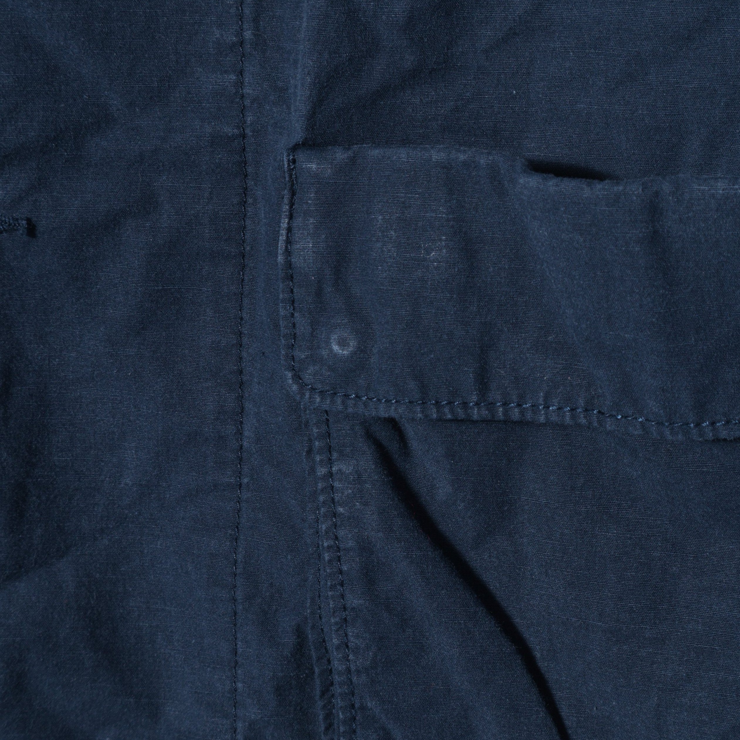 ・ルーズなボックスシルエットを採用し、マチポケットや大きめの腰ポケット、ステッチワークを多用しミリタリーのエッセンスをプラス。・滑らかな手触りと優れた耐久性がある最高級品質の綿「スーピマコットン」の落ち綿素材使用。強めに洗いをかけ部分的なあたりを表現。