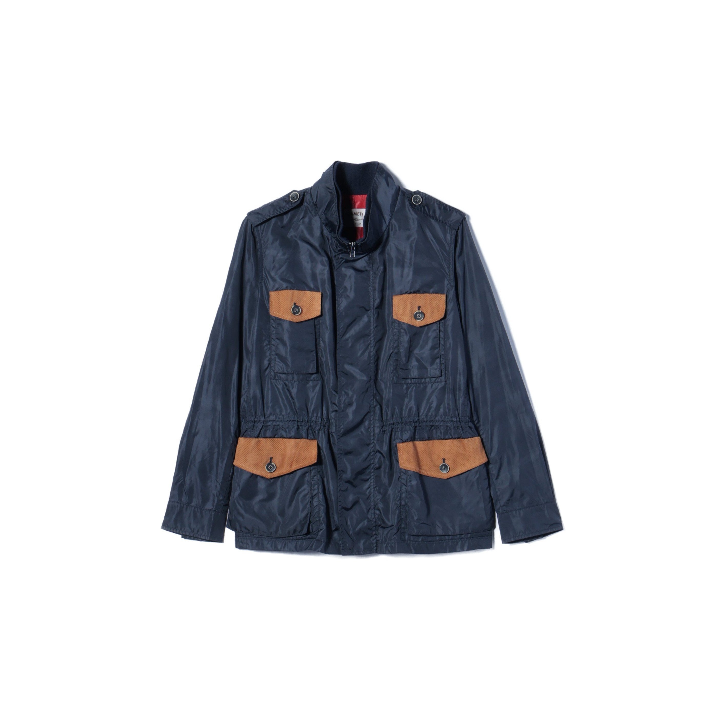 ナイロン素材を使用したブルゾン。ポケットや裏地の配色がデザインのアクセントになっています。春や秋に、ライトアウターとして活躍します。