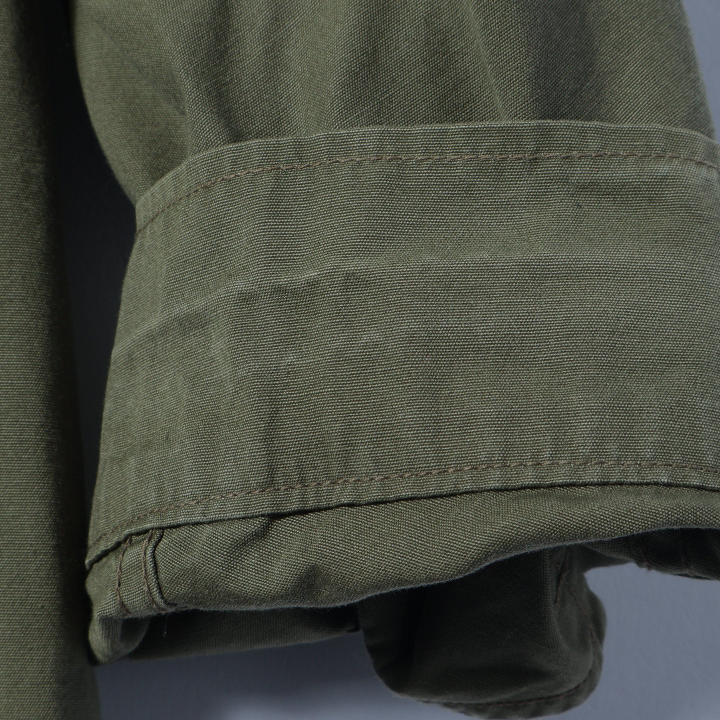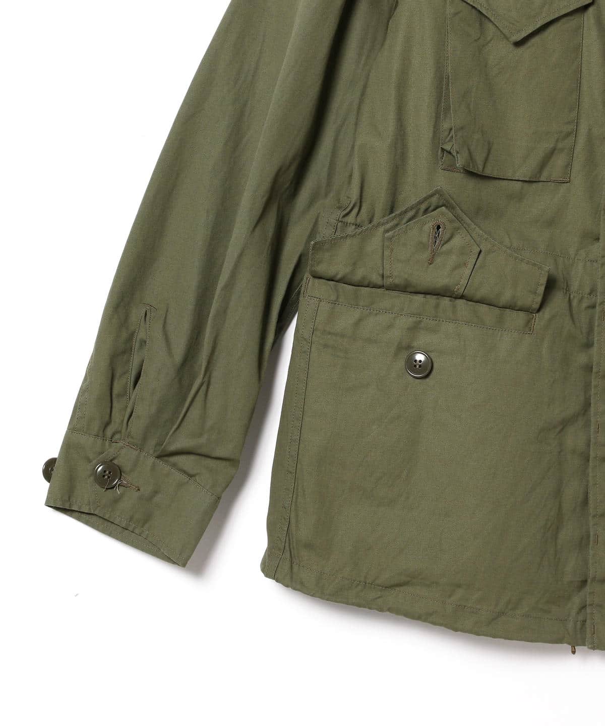ベトナム戦争時のアメリカ軍ジャングルジャケットをベースに作製した、〈fennica(フェニカ)〉別注のフィールドジャケット。薄手ながら、目が詰まって、しっかりとしたコットンポプリン素材を使用しているので、合わせるアイテムで季節の変化にも対応可能です。すとんと落ちるストレートなシルエットでシンプルに着こなすも良し、コードを絞ってウエストシェイプを楽しむも良し。大人のアーミースタイルを仕上げる、着こなしがいのあるジャケットです。