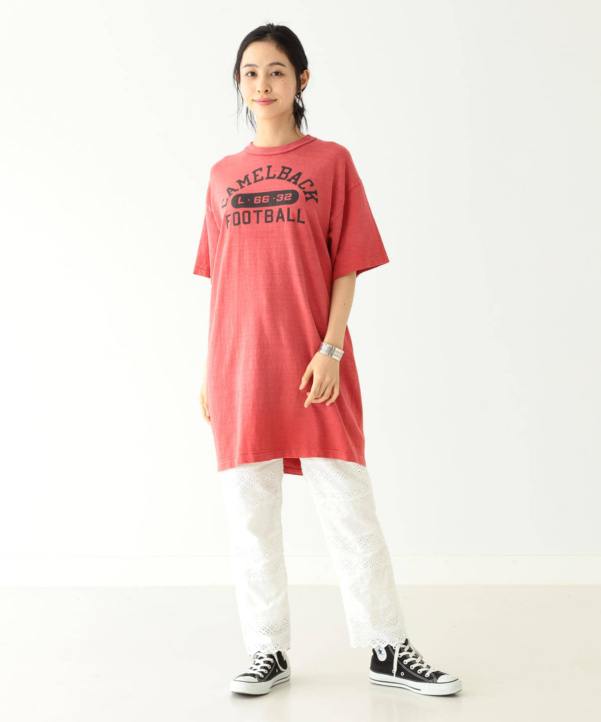 古着のような色抜けと着込んだような風合いが愛着の湧く〈WAREHOUSE(ウェアハウス)〉のロング丈Tシャツです。全体的にゆったりとしたシルエット且つヒップが隠れるロング丈のため、体型カバーも叶えてくれるひと品。カジュアル派のあなたへおすすめのアイテムです。