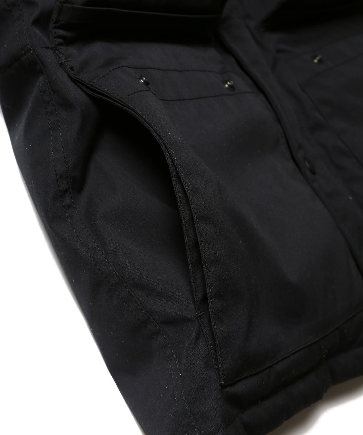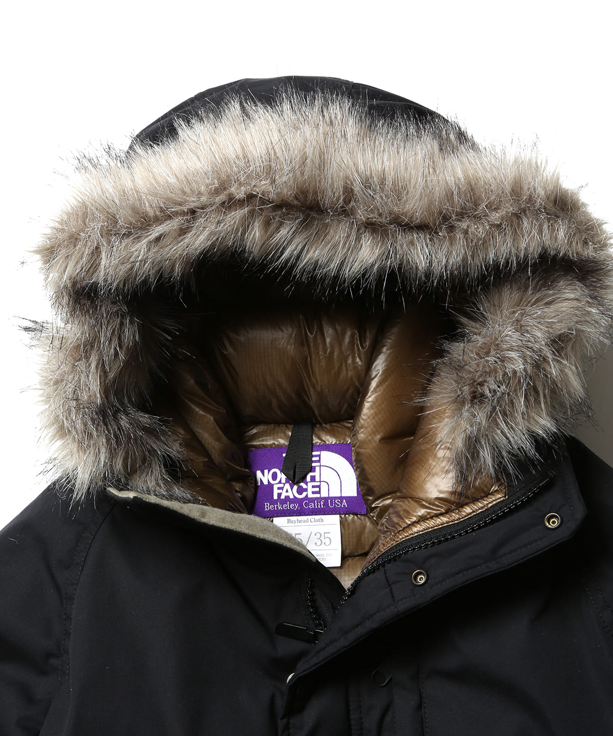 〈THE NORTH FACE PURPLE LABEL〉の定番であるロング丈のファー付きダウンジャケット 『65/35 LONG SEROW』。独特の風合いを持つ 65/35 ベイヘットクロスと、優れた保温性を持つ光電子ダウンが魅力の同モデルをベースにした、〈Pilgrim Surf+Supply〉限定モデル。シェルとライニングを配色にし、コーディネートに取り入れやすいよう着丈を短くリサイズ。また、〈THE NORTH FACE PURPLE LABEL〉の刺繍ロゴを左袖に配置したスペシャルなデザインに仕上がりました。