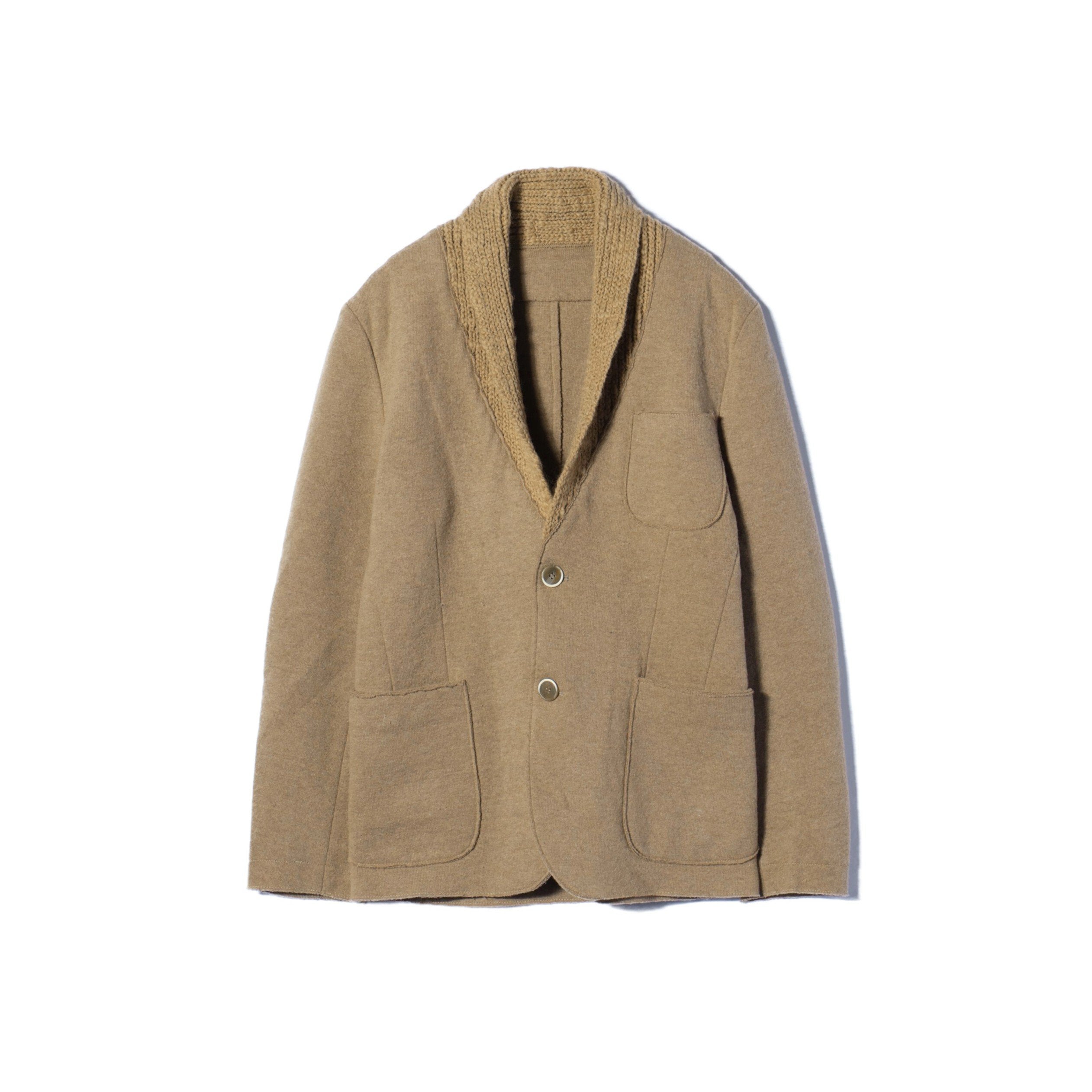 襟元の切り替えが特徴のジャケット。表地にウール / ナイロンの混紡素材を使用しているため、保温性も優れています。