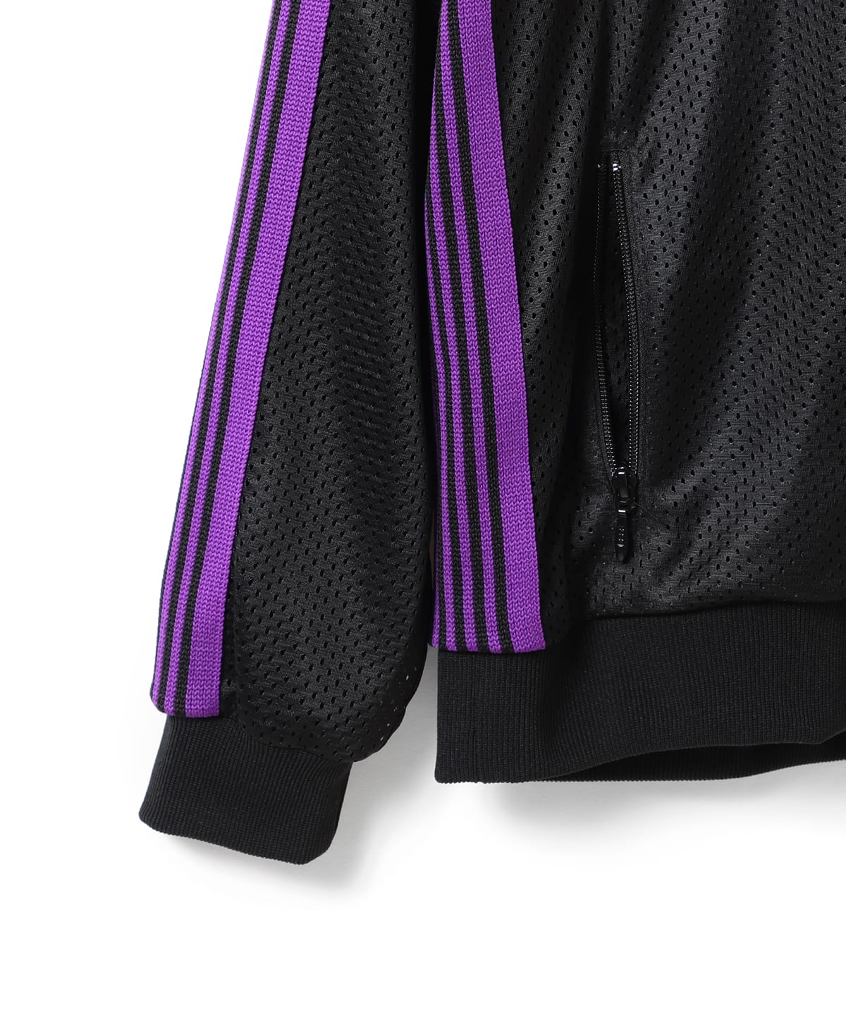 メッシュ素材を大胆に使用した〈NEEDLES(ニードルス)〉の別注ジャージ。3シーズン着用できる汎用性の高さも魅力です。