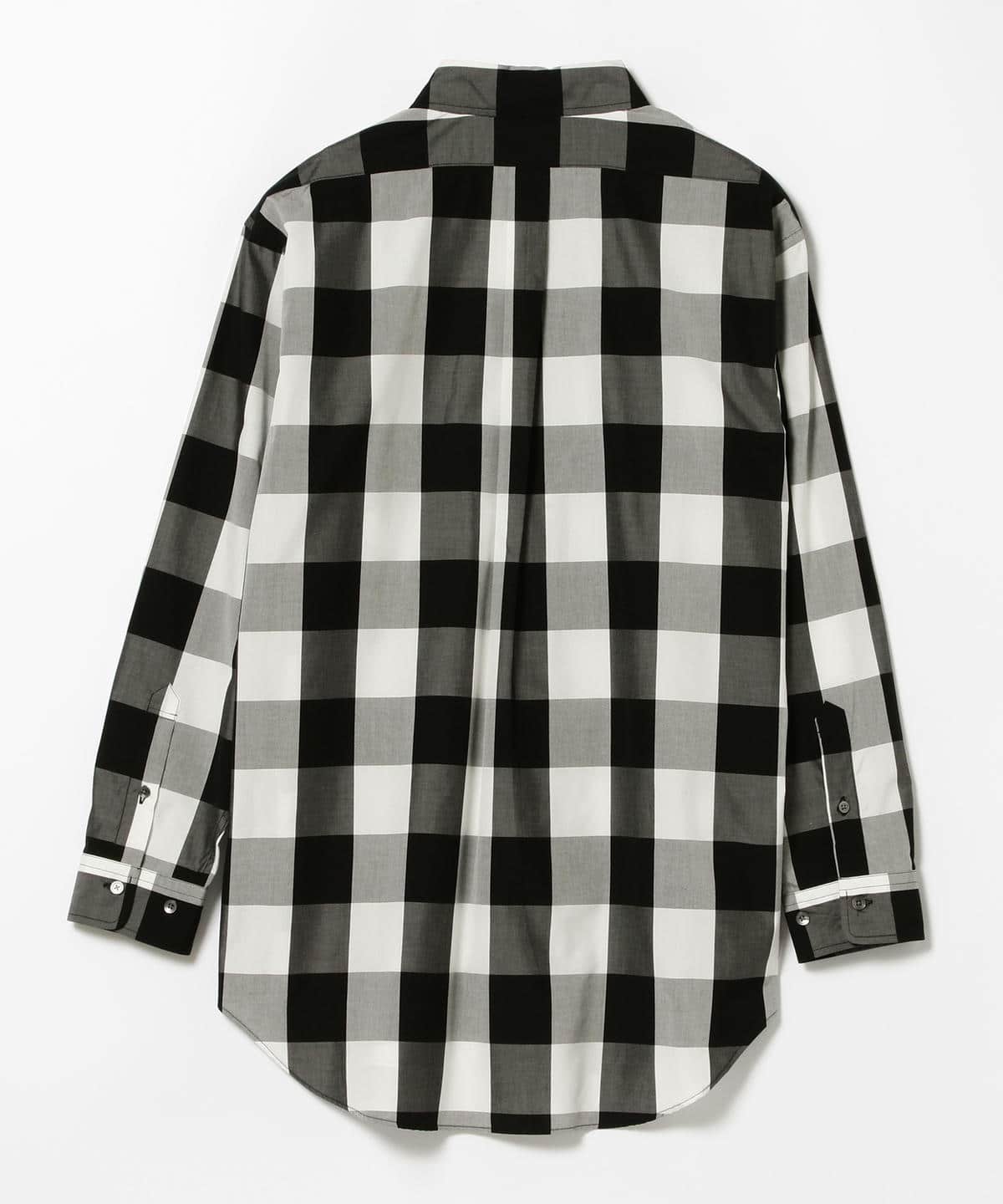 存在感のあるビッグシルエットシャツ。ただ大きいだけでなく、計算されたパターンによる美しいシルエットを特徴とする1枚です。ヨーク、襟幅、剣ボロなどの仕様はクラシックシャツを踏襲したディテール。ステッチワークの細かさや、細部まで柄合わせを行うなど、日本国内のトップクラスの工場で製作しました。テキスタイルは、適度なハリを持ちあわせたブロックチェックのシャツファブリック。製品洗いが加えられ軽やかな仕上がりです。| レーベル | International Gallery BEAMS |
