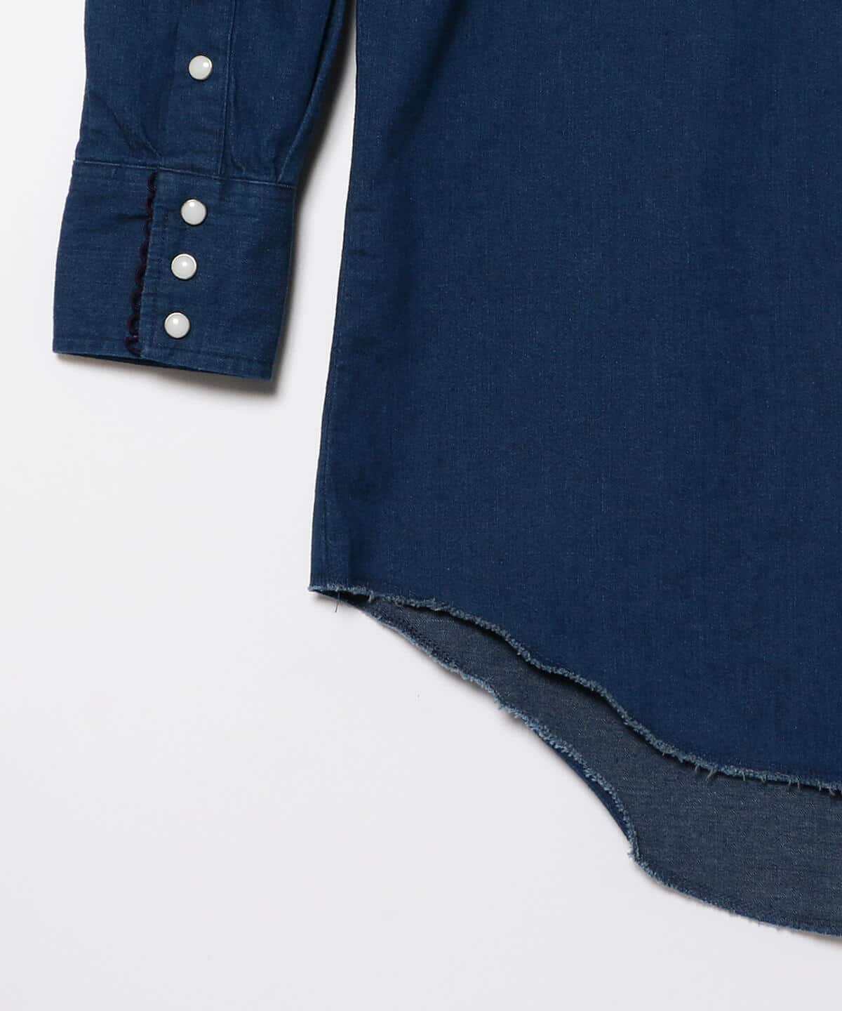〈Wrangler(ラングラー)〉の代表的な定番アイテムであるウエスタンシャツが〈maturely(マチュアリー)〉別注で新登場です。ユニセックスサイズをベースに肩位置と袖丈を女性が着やすいサイジングに調整。オリジナルのブレードテープやピコテープを各所に配し、クラシックアイテムでありながらカジュアルスタイルにしっくり馴染む1着に仕上げました。
