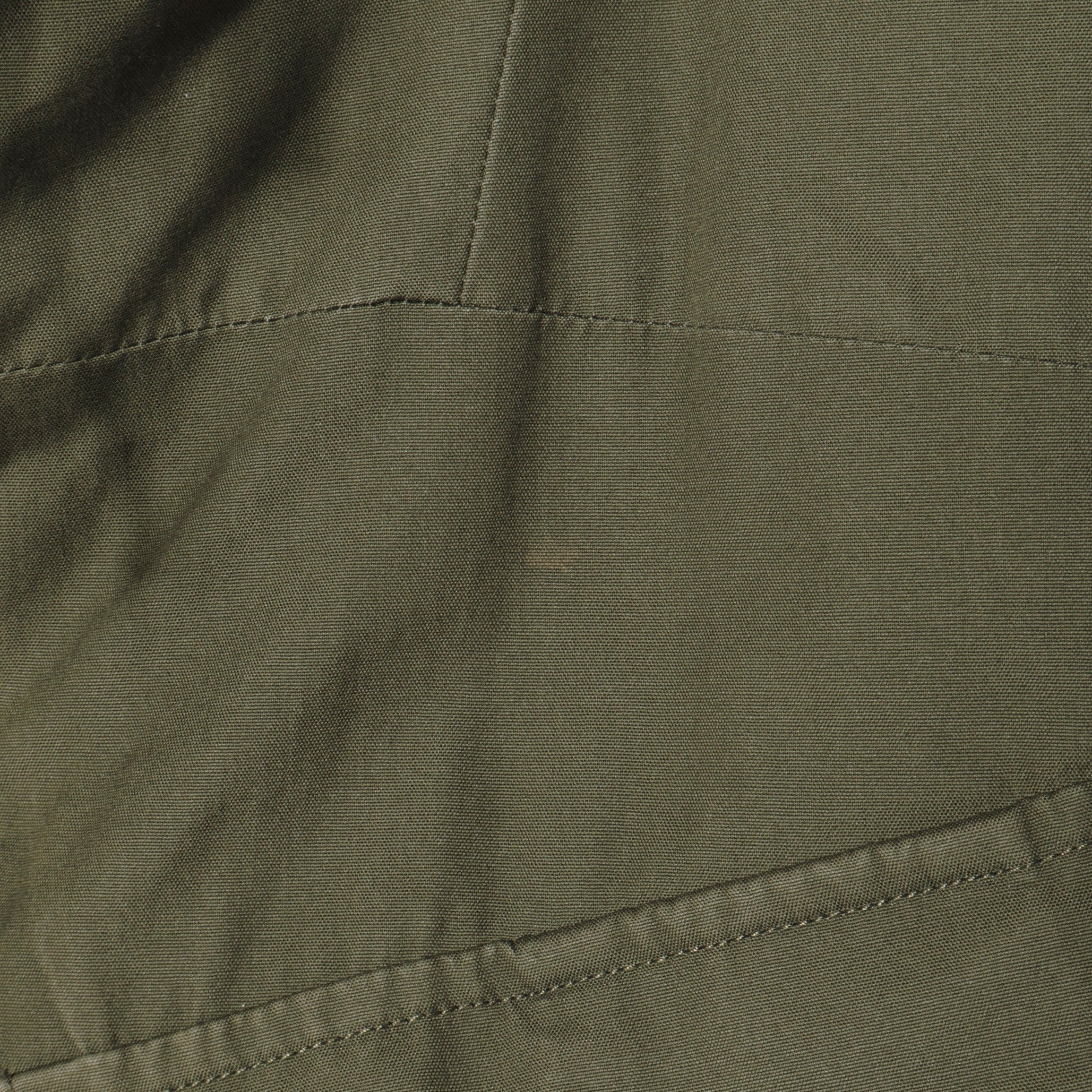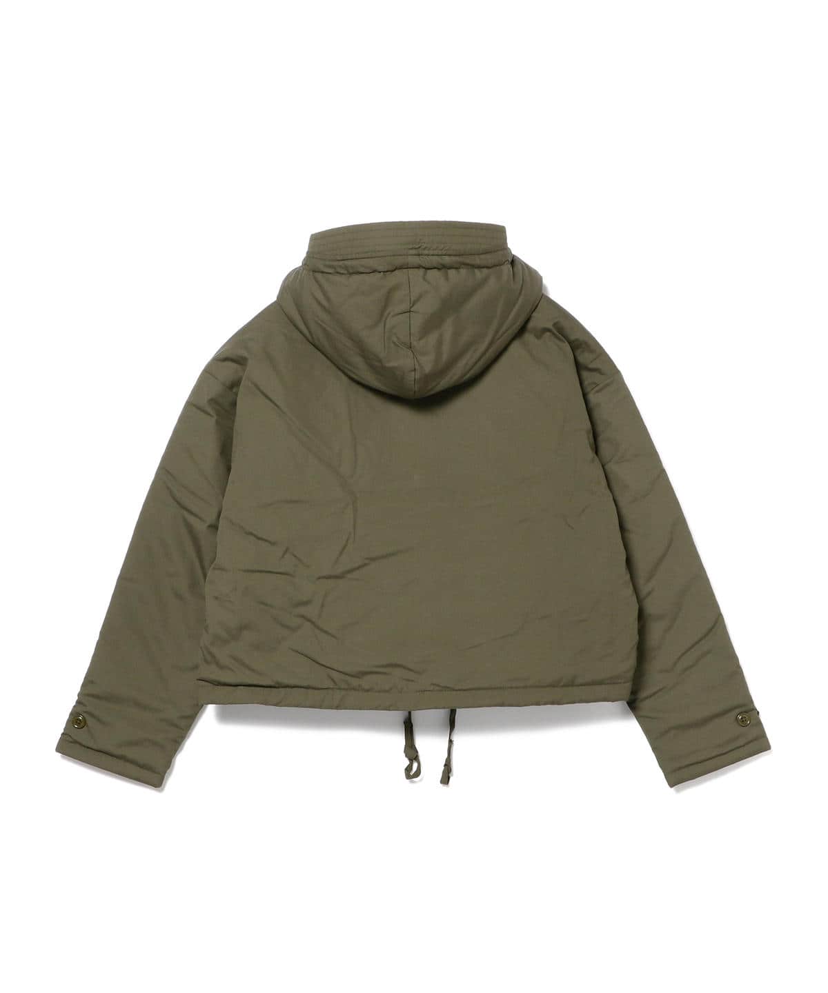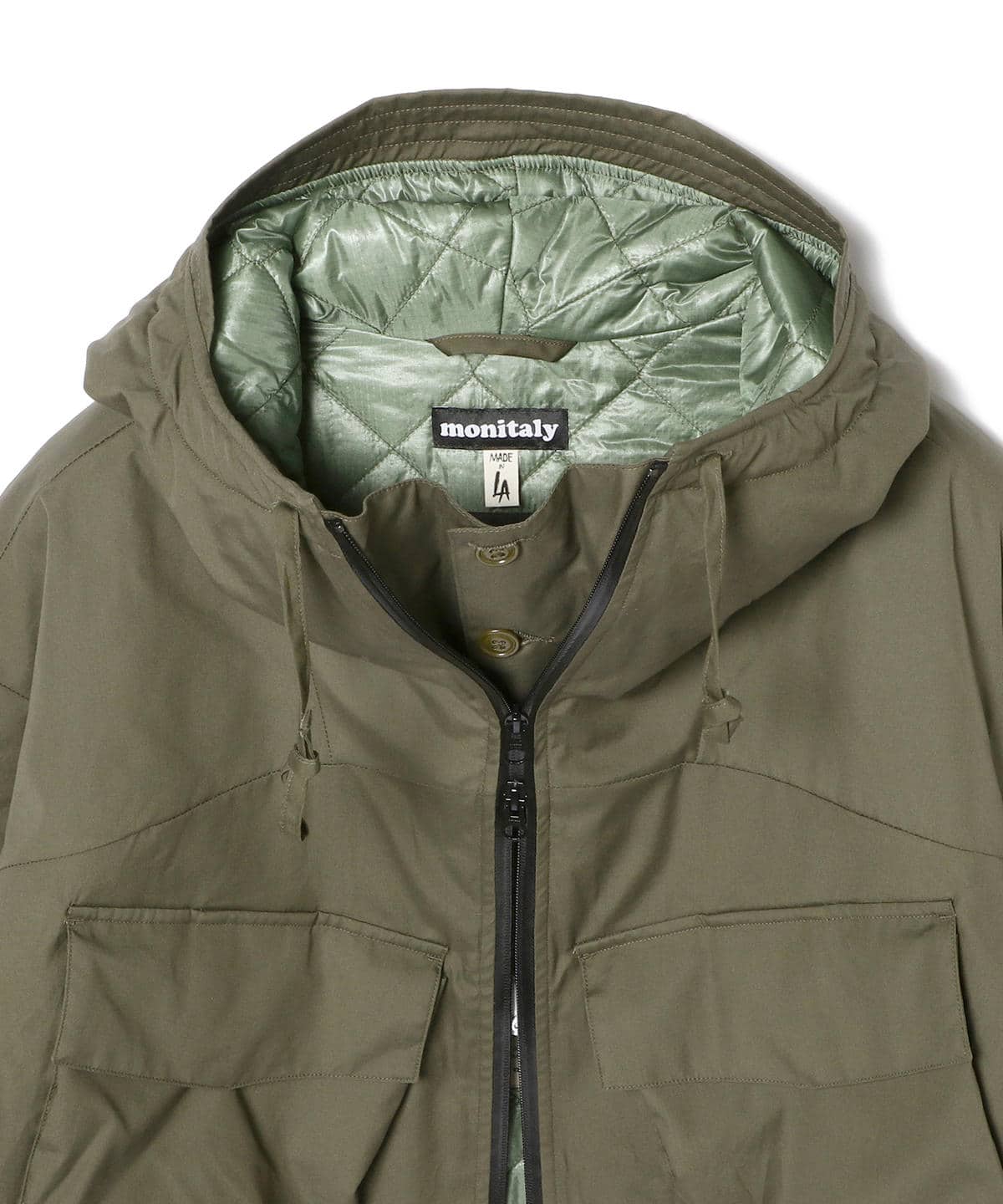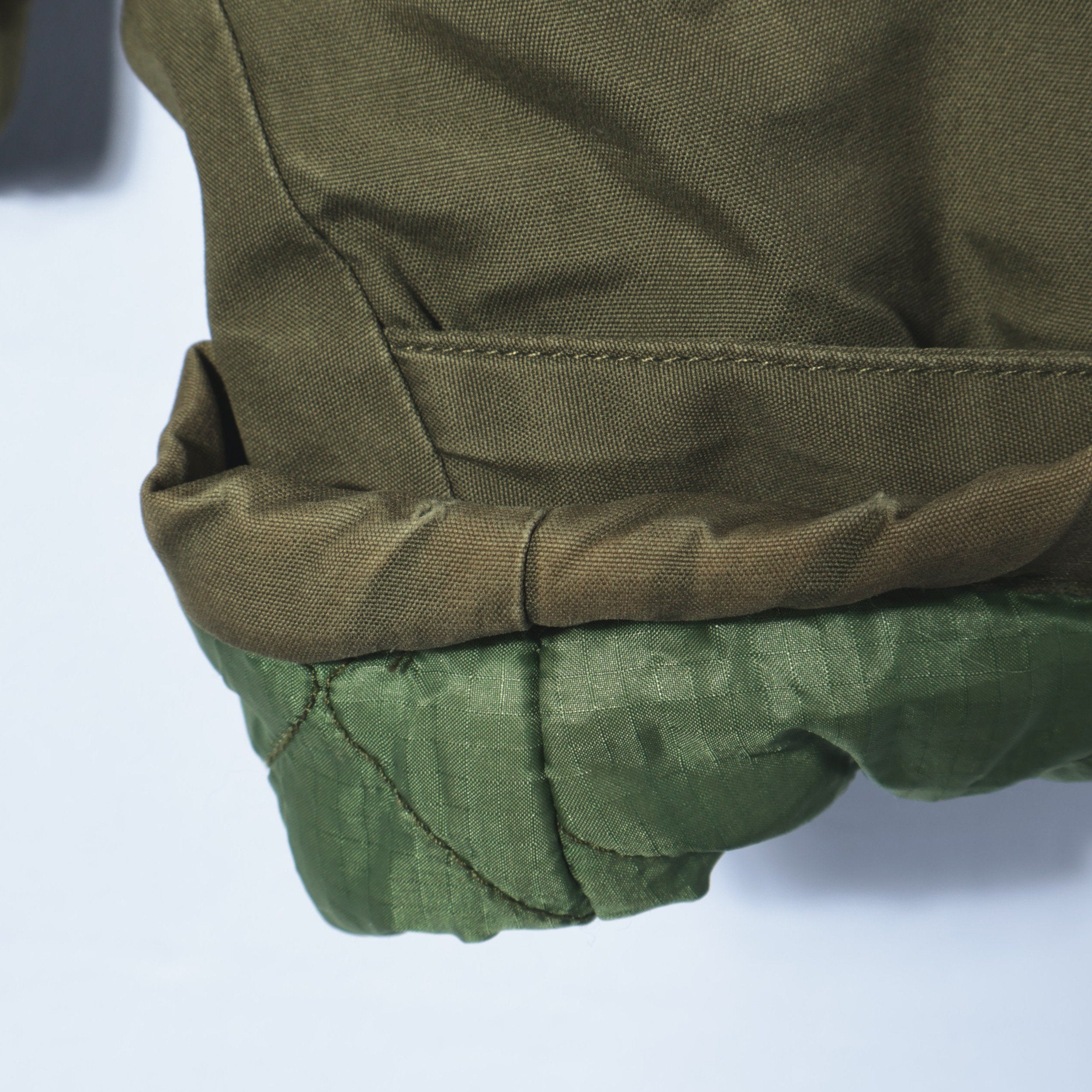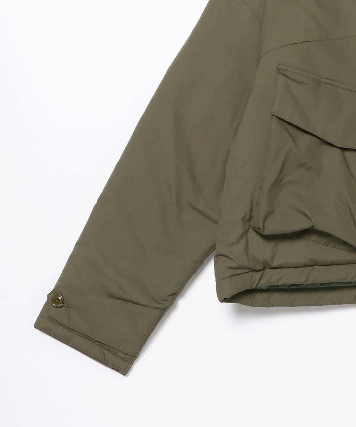 1950年代のイギリス軍のミリタリープルオーバーと、ヴィンテージのフィッシングジャケットを掛け合わせてデザインされた、オリジナルスタイル。元々はプルオーバーだった物を、脱ぎ着がしやすいようにジップオープンタイプに変更し、着丈も極端に短く仕上げたユニークなスタイリングが魅力的です。軽量で薄手なポリエステル素材のハイロフトインサレーションを、ダイヤモンドパターンにキルティングして封入しているから保温性抜群。更にパラシュートにも使われる、高品質リップストップナイロンのライニングが防風性を高めます。シェルは、LAに本拠を構える『Vancloth & Sons 』社へスペシャルオーダーしたオリジナルのコットン100% バンクロスオックスフォードを採用。高密度な打ち込みによる、独特なハリと光沢が特徴。着用と洗いをくり返すことで徐々に低下しますが、撥水性も備えた高機能素材です。着込んでいくとアタリが生まれ風合いを増す、天然素材ならではの経年変化をご堪能ください。