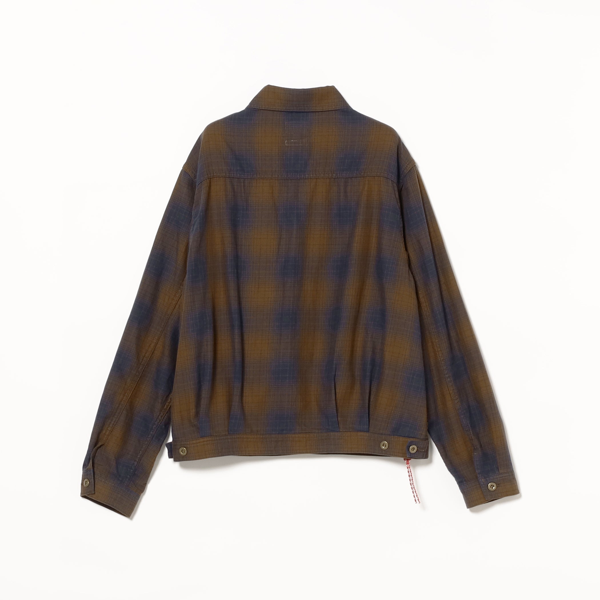 程よい肉感のオンブレーチェックを使用。しっとりとした肌ざわりや落ち感があり、秋口から羽織れる1品です。