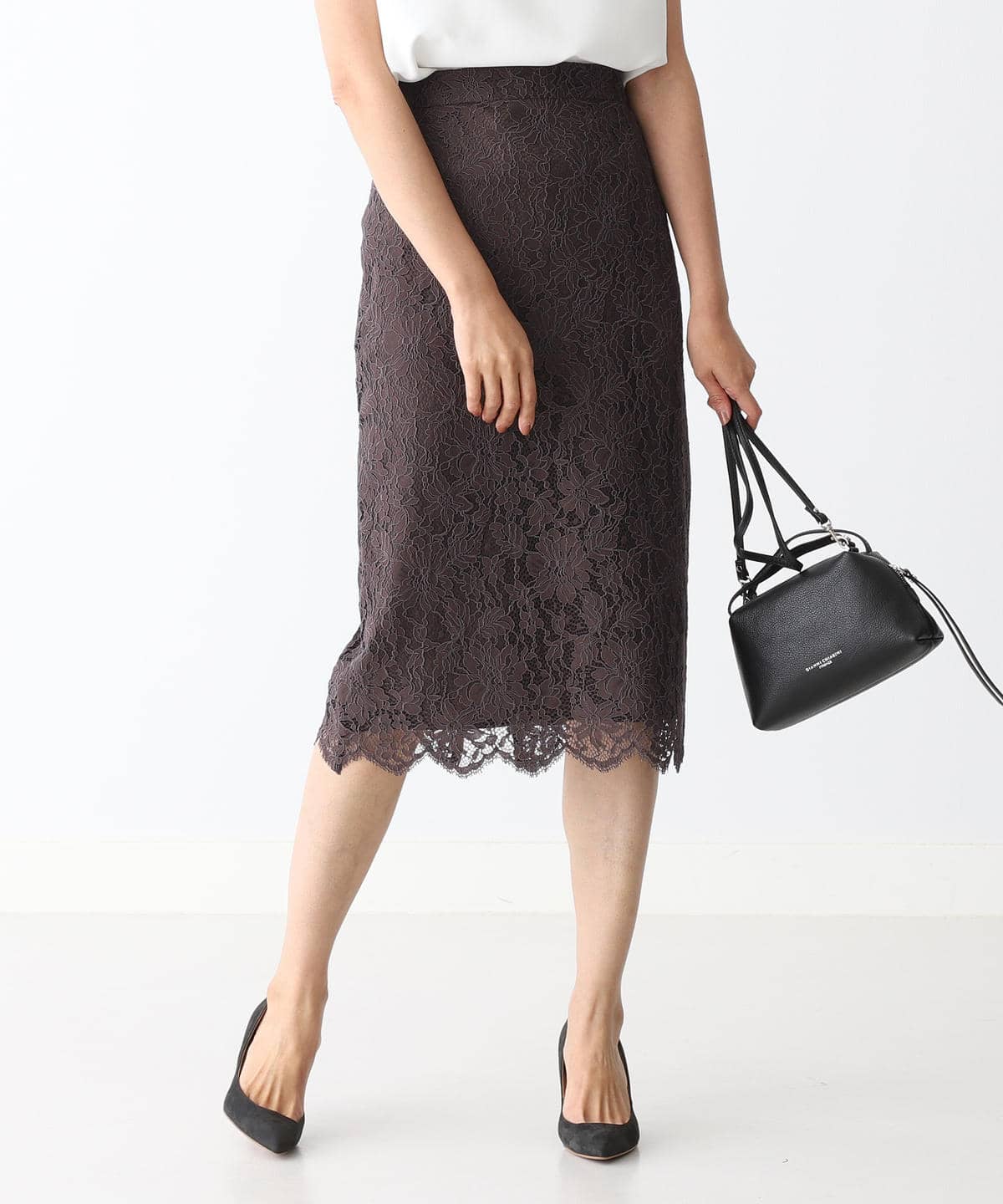 ・デザインからこだわって仕上げたコードレースを使用した、シンプルなタイトスカート
