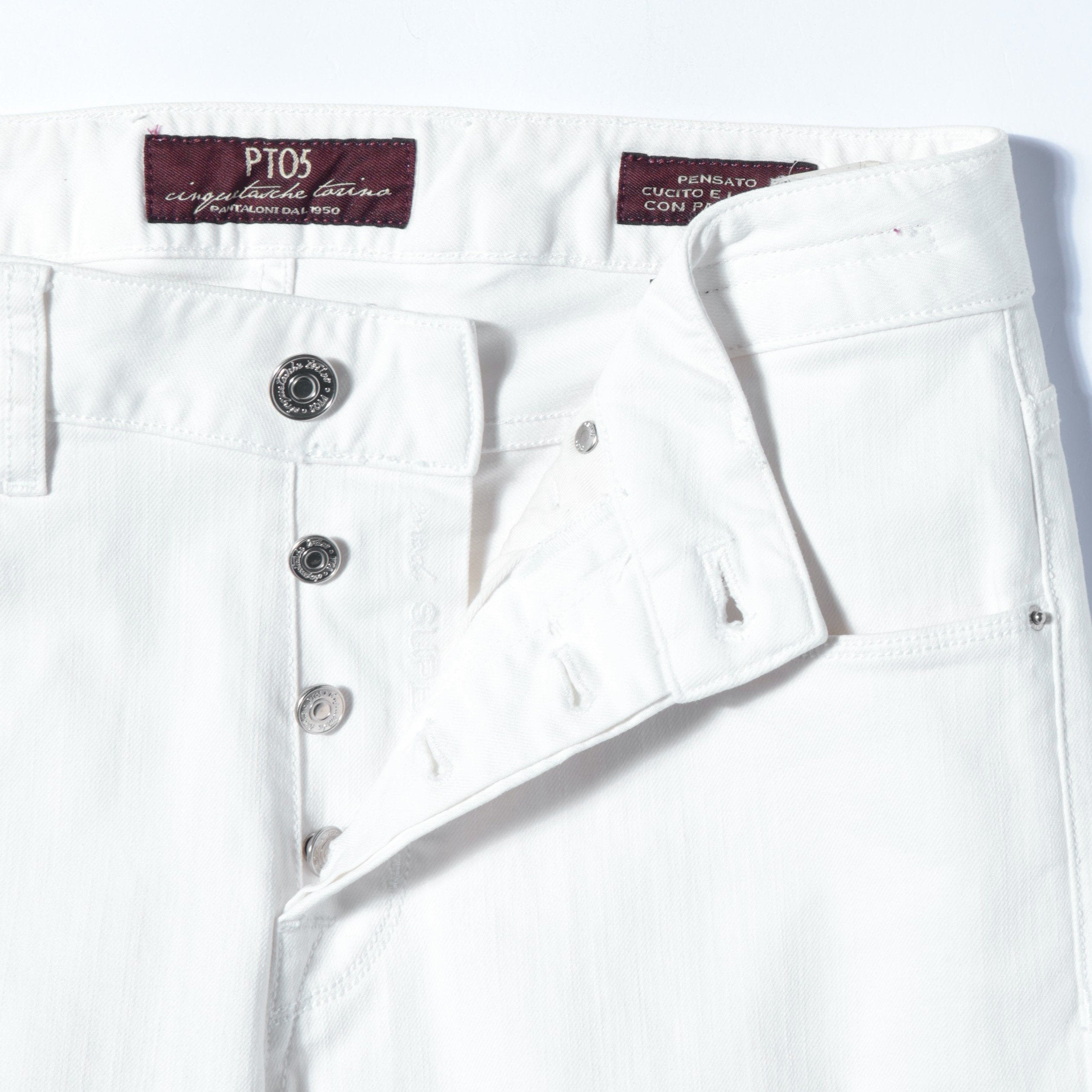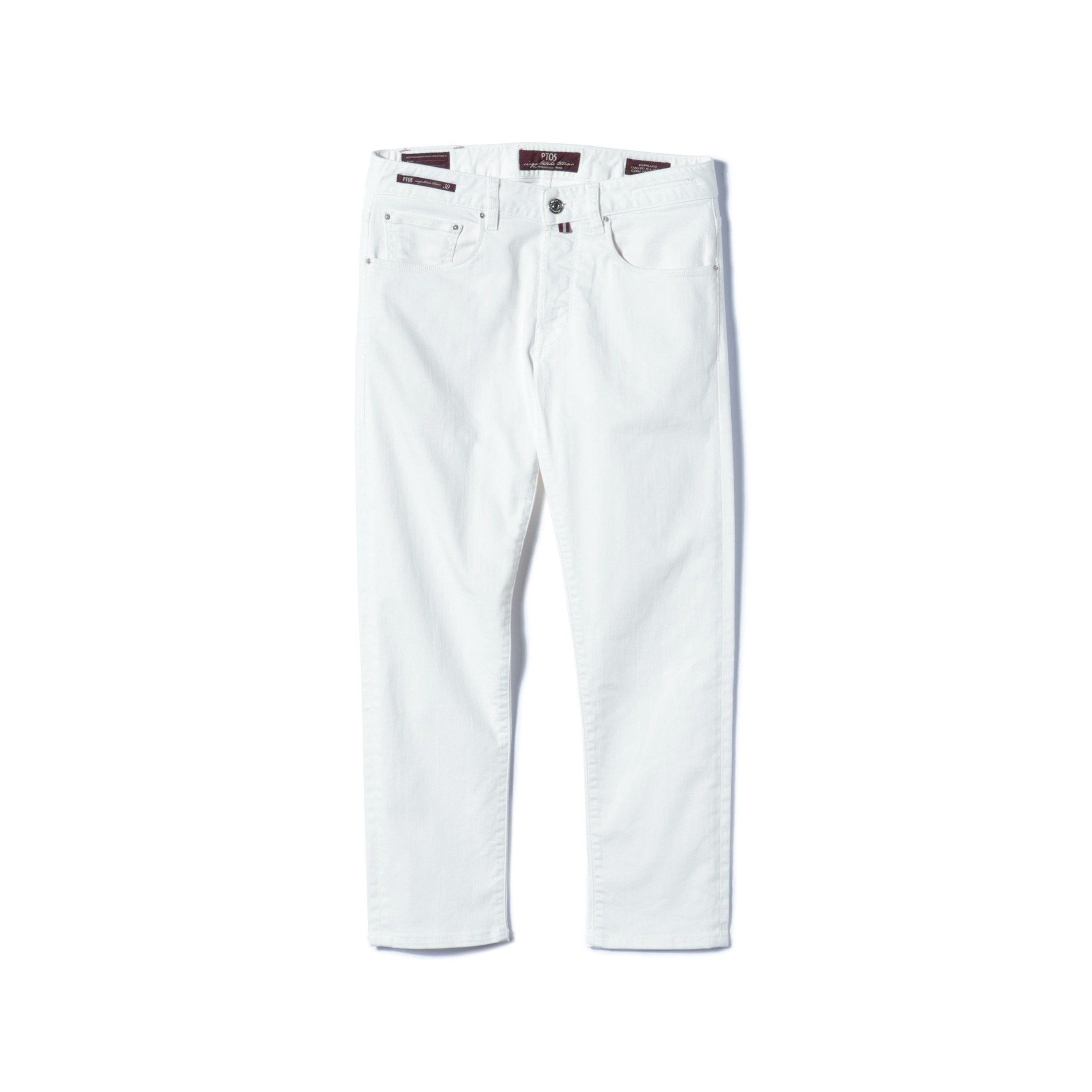 カジュアルになりすぎない表情が魅力のパンツ。バックにはブランドロゴを配したパッチがほどこされています。