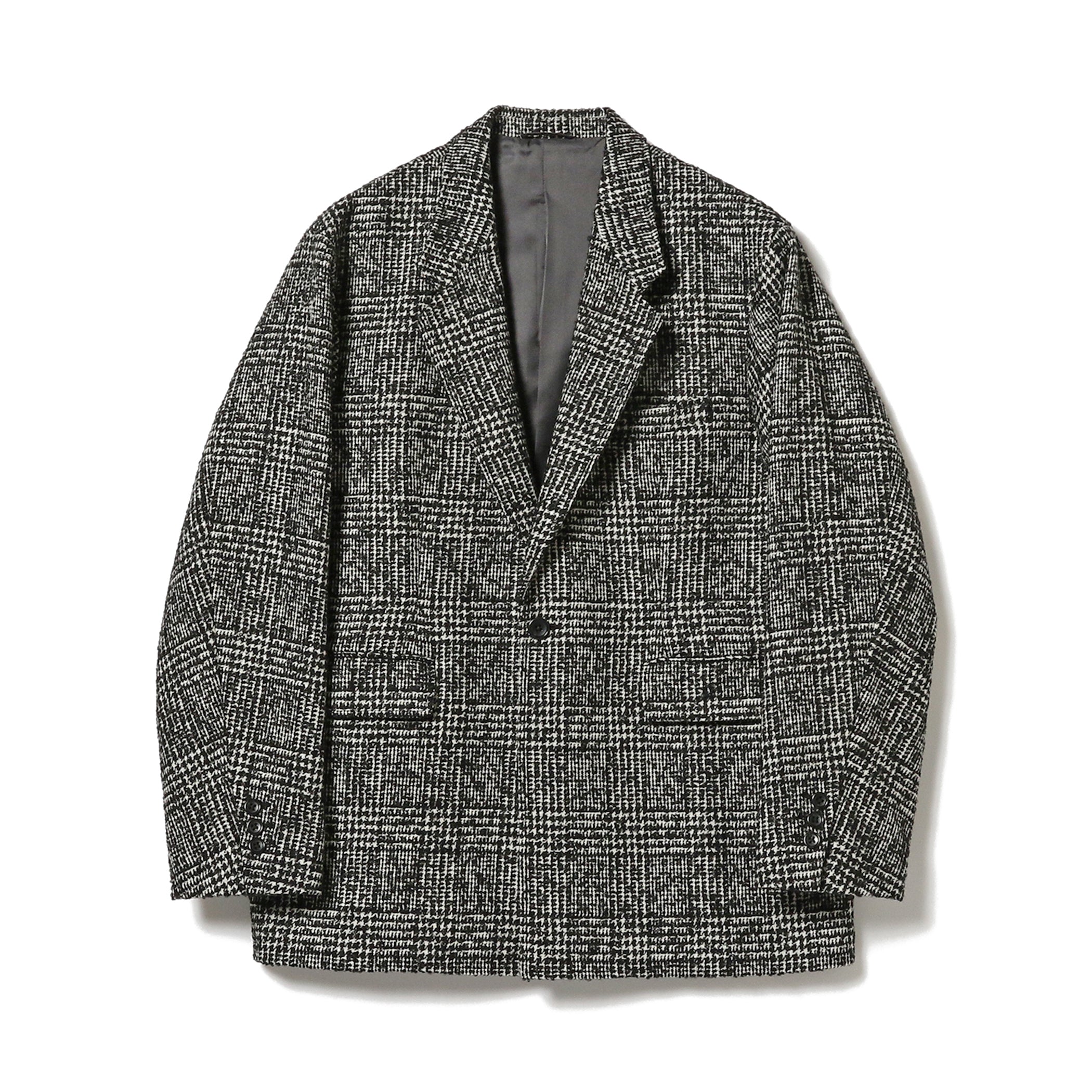 クラシックなツイード素材をあえてルーズシルエットに落とし込んだデザインが特徴。よりカジュアルにコーディネートしやすいのもポイント。身幅をワイドに取り、肩も落ちた状態なので全体的に野暮ったくならずバランスのとれたアイテムになっています。