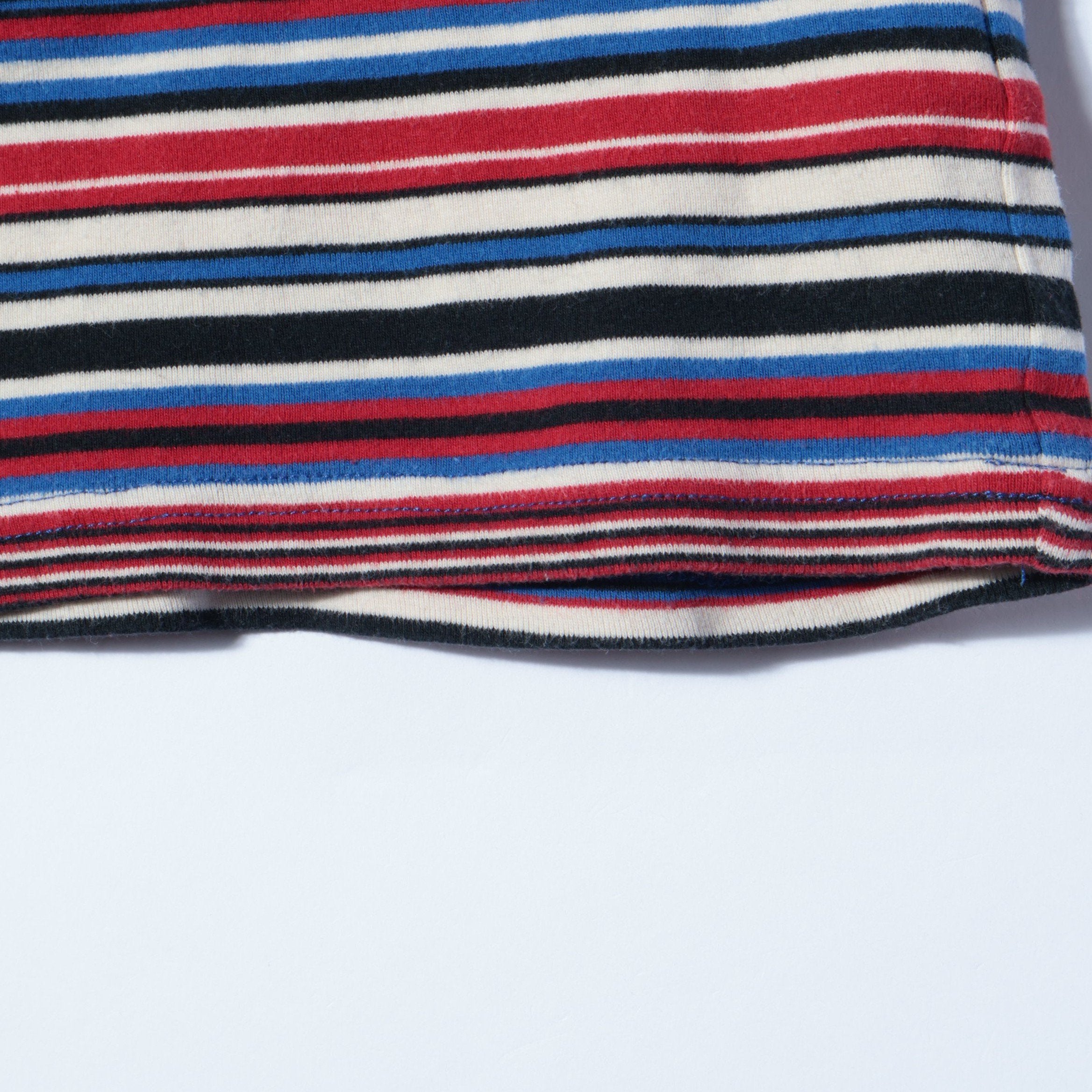 インナーとしてレイヤードした際にもボーダー柄を覗かせられるアイテム。柔らかな風合いのフライス素材です。
