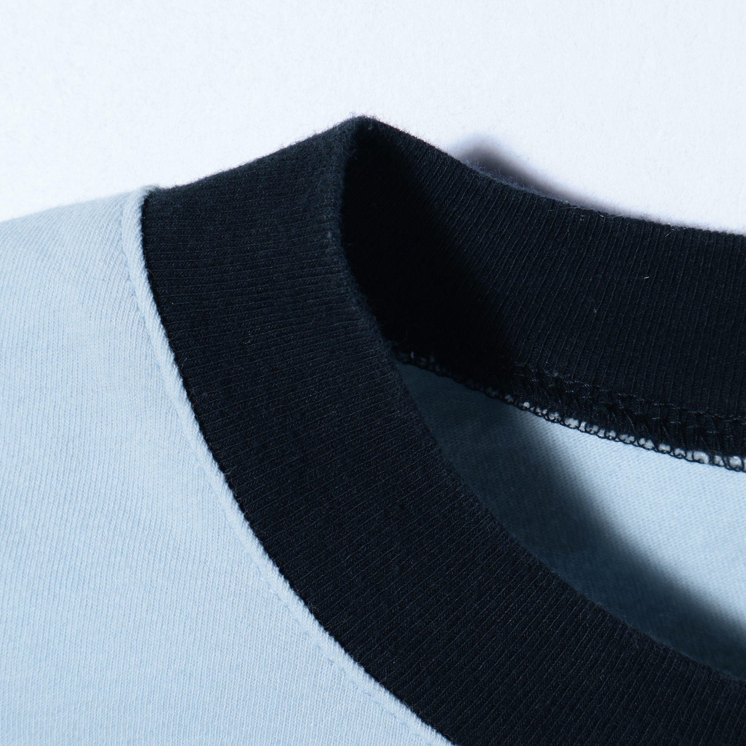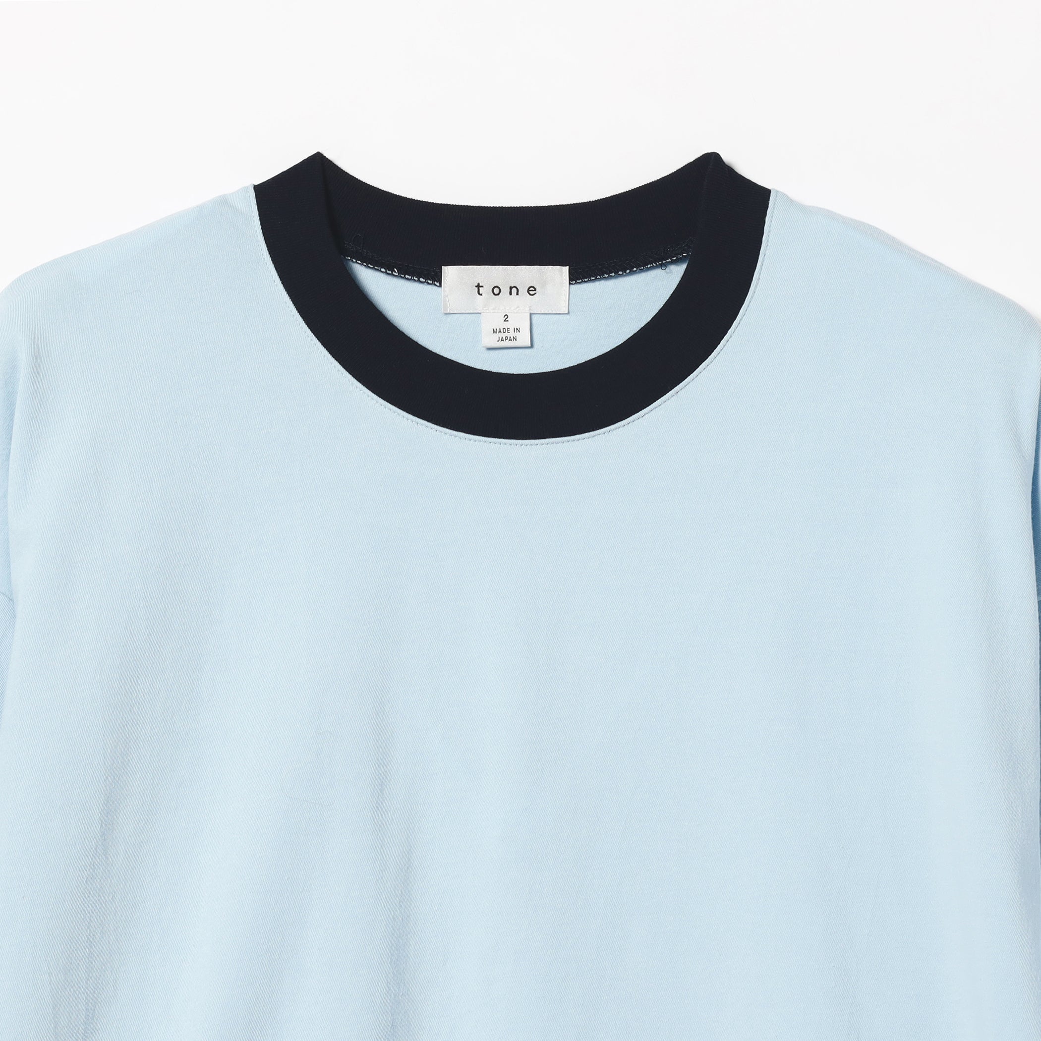 シャリっとした肌触りが特徴のオリジナル生地を使用したトリムTシャツ。インナーにも一枚着でも着用いただけます。
