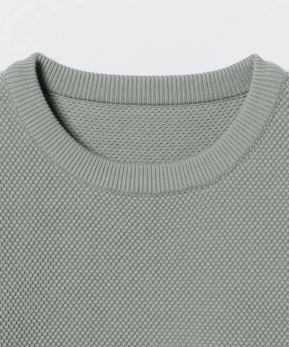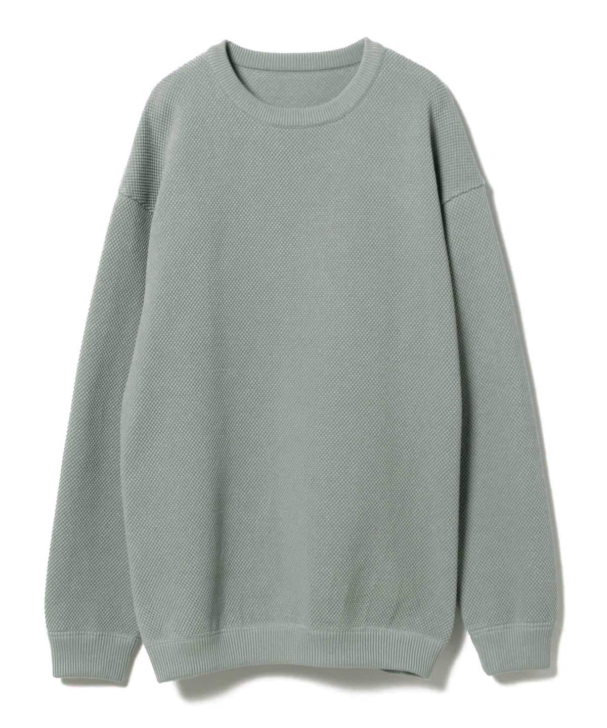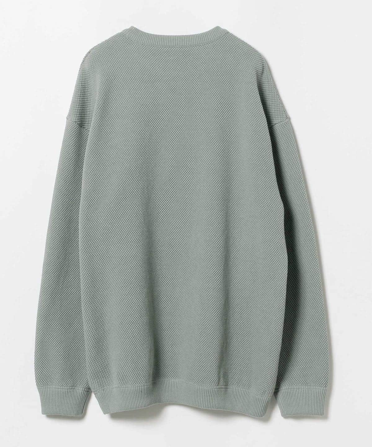 厚手に編み立てた鹿の子地のコットンクルーネックニット。ニット地ですが、ややゆったりしたサイズ感でスウェットの様な着こなしをお楽しみいただけます。またご家庭でのお手入れも可能でデザイン性、実用性も兼ね備えたアイテムです。