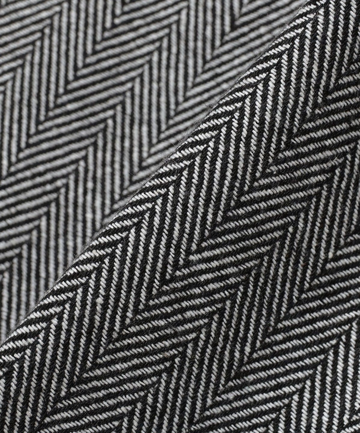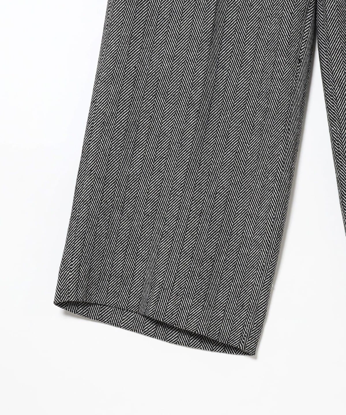 吸湿性と保湿性を兼ね備えたポリエステル90%・ウール10%のヘリンボーン生地を使用。