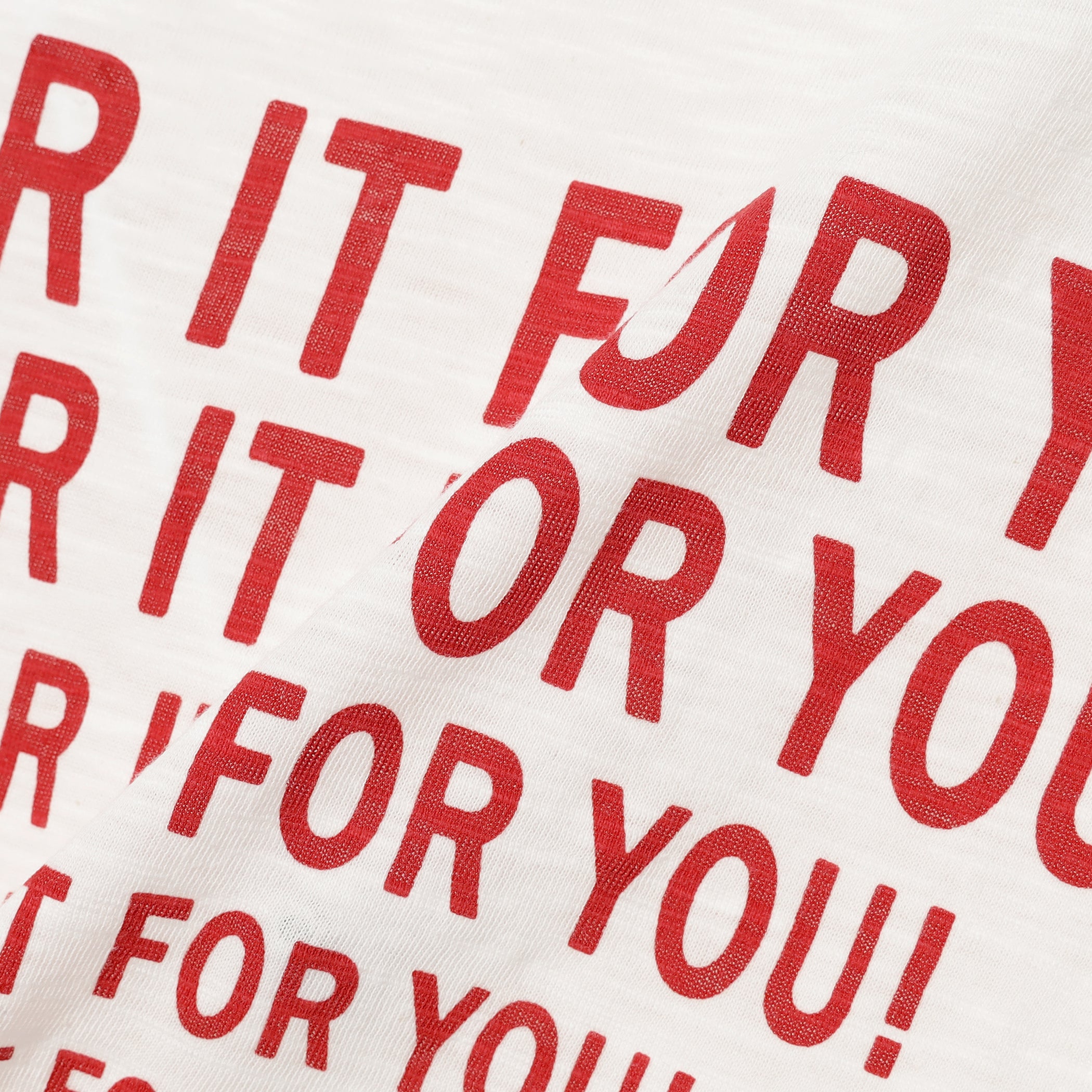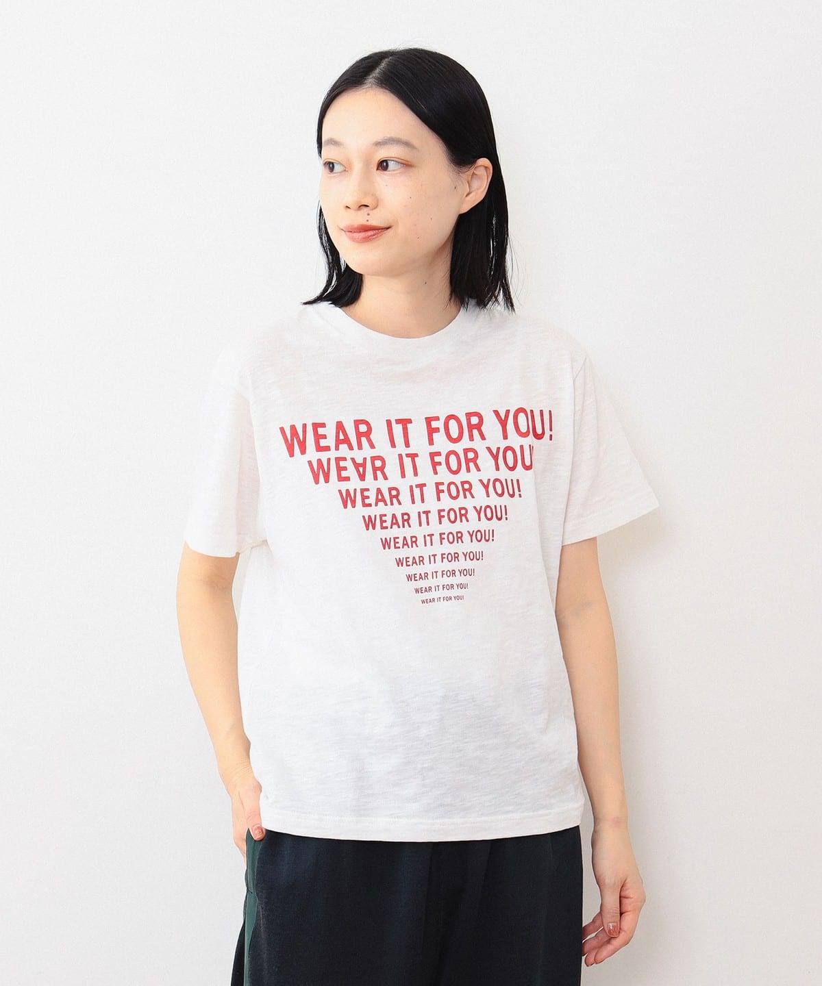 ロゴが整列したデザインのプリントTシャツ。「WEAR IT FOR YOU!」とは「あなた(自分)のために洋服を着てね!」という、自分のためにファッションを楽しんで欲しいというメッセージを込めました。良く見ると1文字だけひっくり返っている遊び心もプラス!