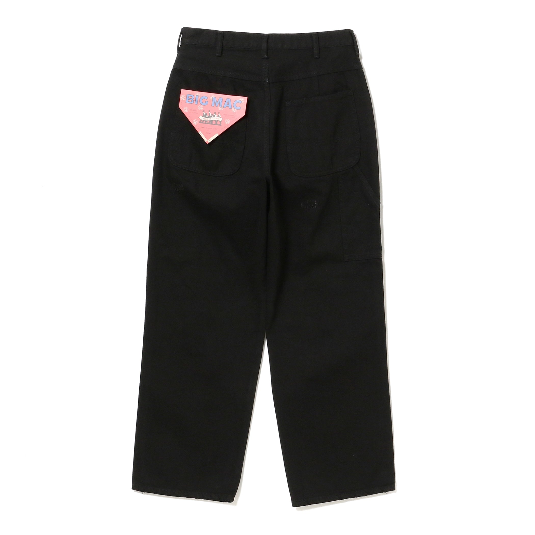 完全新型の後染めリペアペインターパンツを製作。歴代の所有者がリペアを繰り返して着用し、リペアを経た後に後染めしたイメージで、リペアをした上から後染めを施したスペシャルなひと品です。リペアのステッチのみ、ボディと少しだけブラすことで程よくアクセントになるように。ボディのステッチは同色で、トップボタンやリベットが活きるように仕上げました。