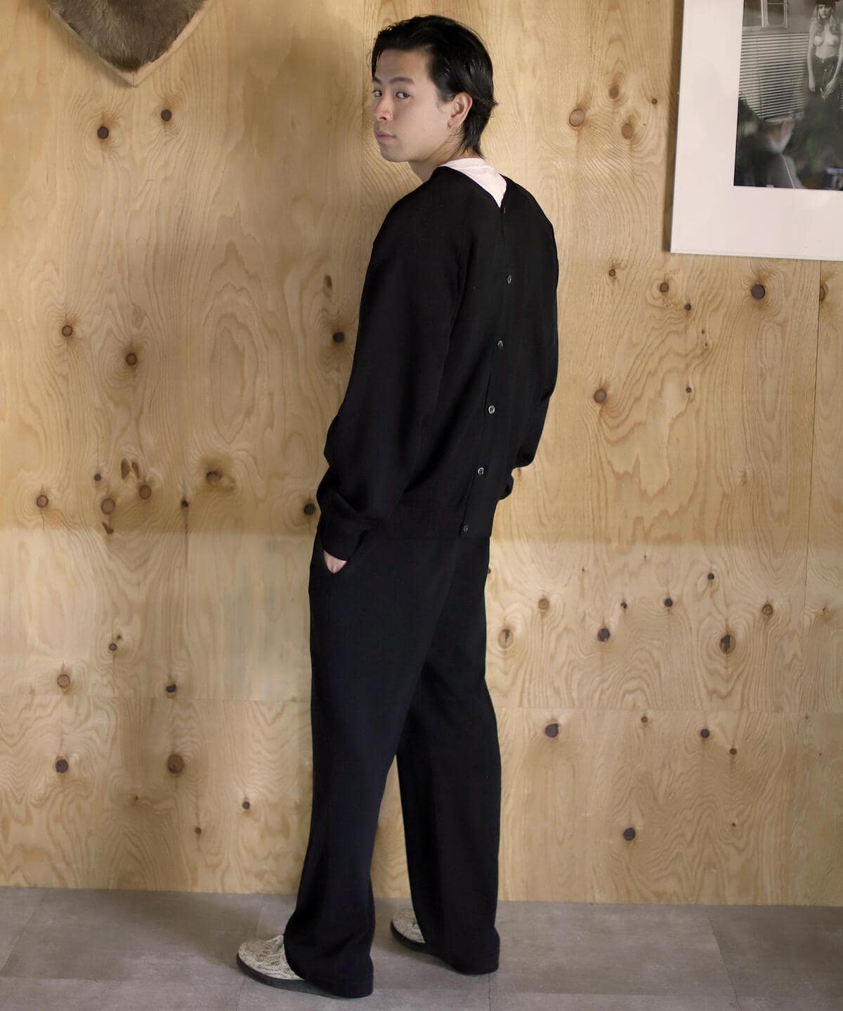 リラックスシルエットに仕上げた前後両面で着用可能なVネックカーディガン。着心地の滑らかなポリエステル・レーヨン混紡素材を採用。ラグランスリーブとゆとりを持たせたシルエットで、リラックスした着用感をお楽しみいただけます。